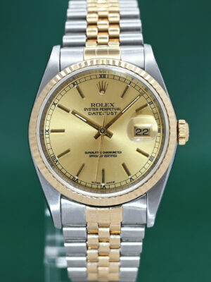 Rolex Datejust 16233 No Holes Sapphire Crystal 18k Gold Steel 36mm Κ Series 2001 Champagne Dial OUR PRICE: 6,450.00 €