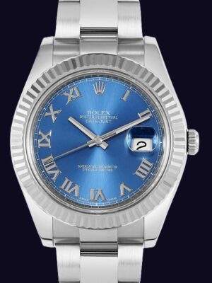 • Datejust II 116334 Azzuro Blue Roman 41mm 18k White Gold Bezel Box&Papers