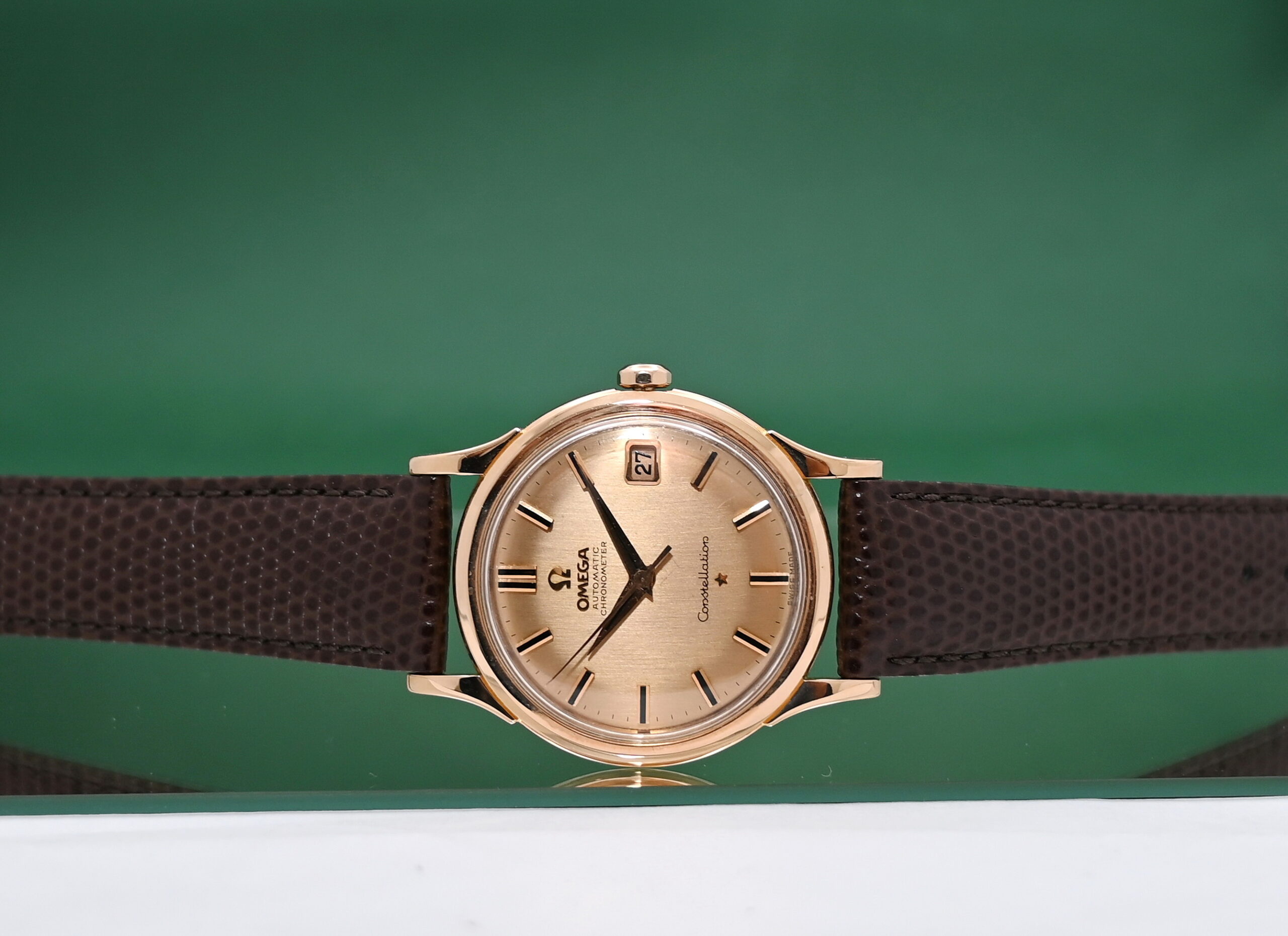 Constellation 14393-4-SC Vintage 34mm Automatic Cal.561 Date 18k Gold Champagne Dial
