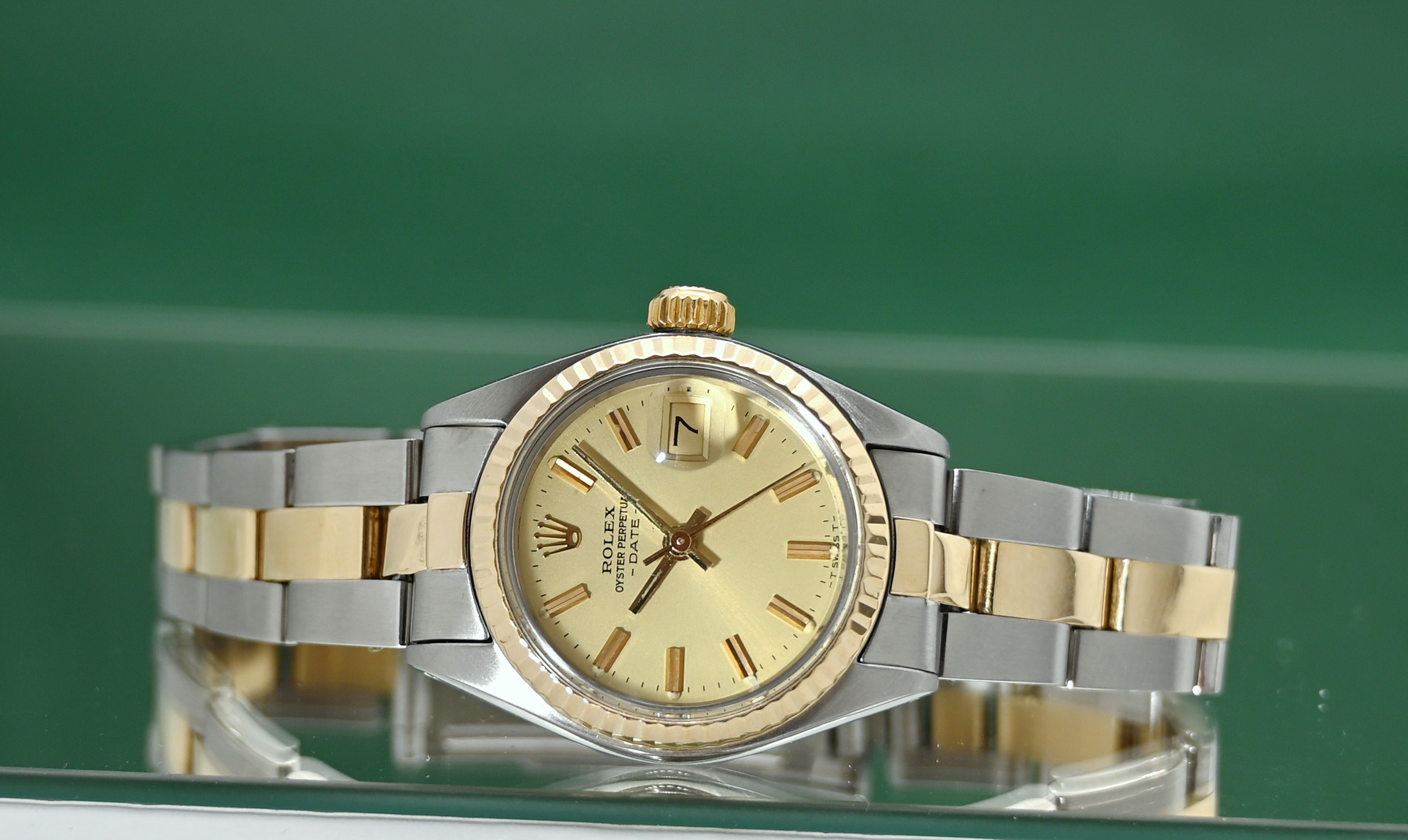 Inquire - Date 6917 Lady 26mm 18k Yellow Gold Steel Automatic Champagne Dial