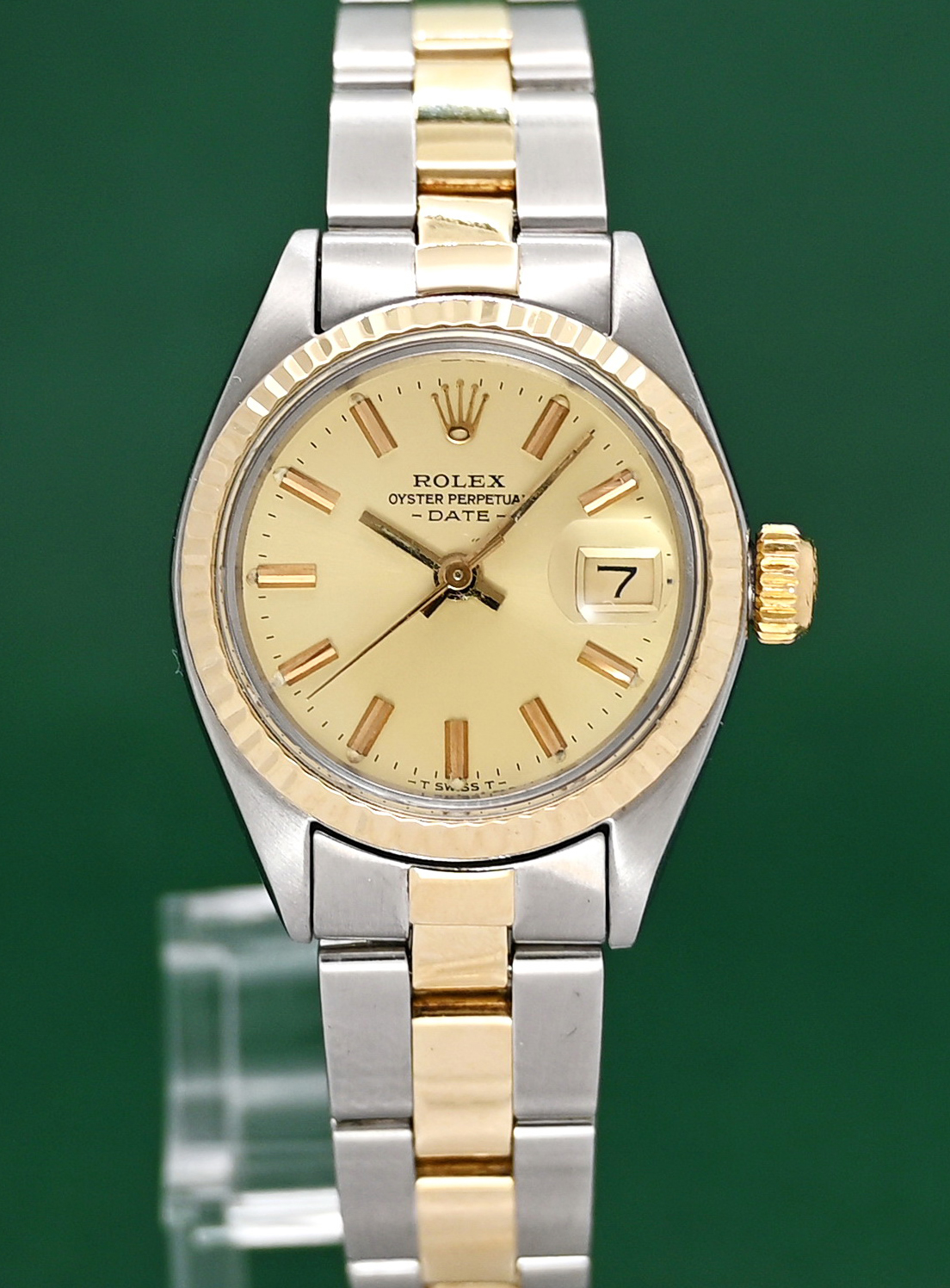 Date 6917 Lady 26mm 18k Yellow Gold Steel Automatic Champagne Dial