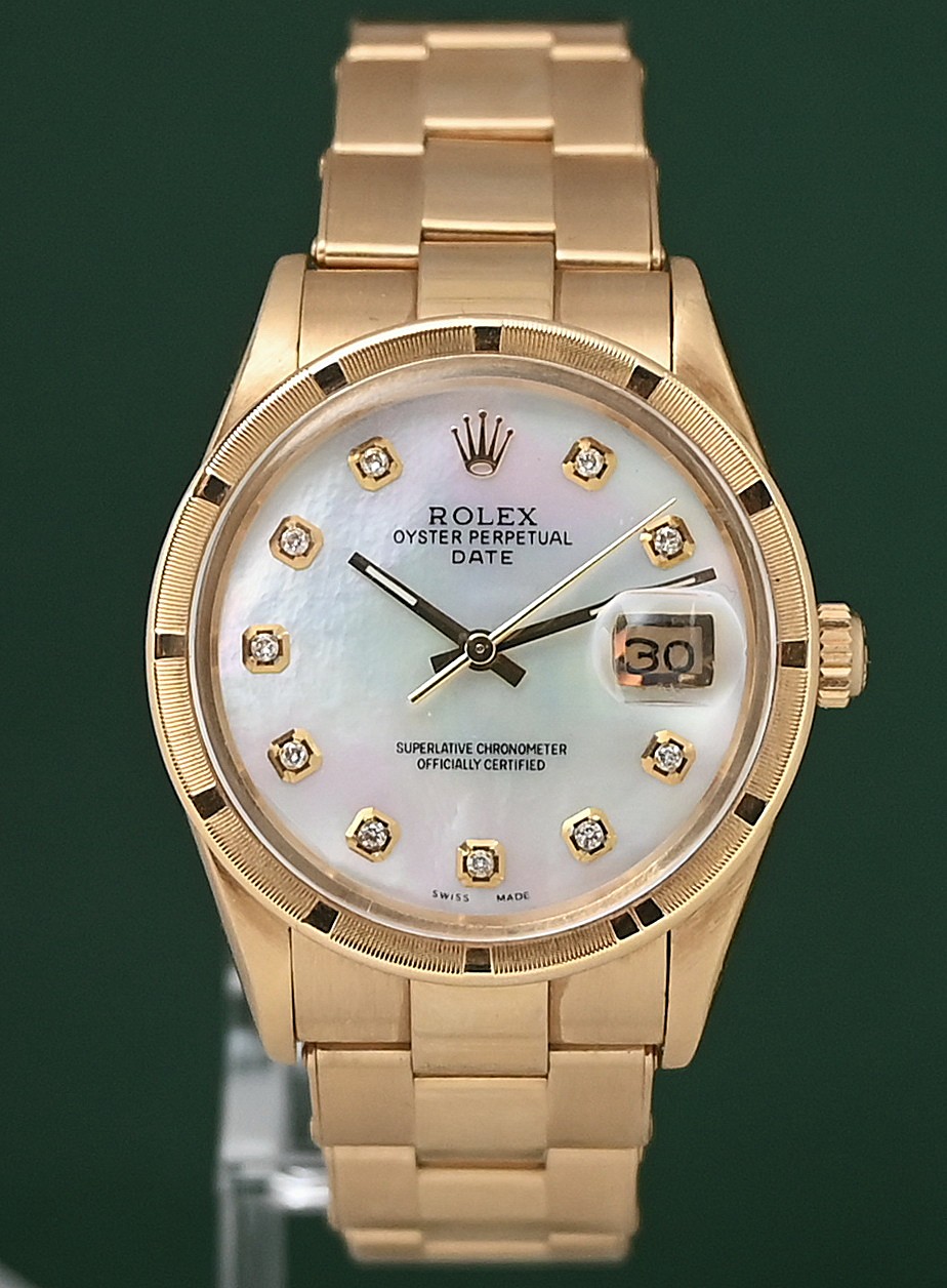 Inquire - Oyster Perpetual Date 15018 Vintage 34mm 18k Gold Mother Of Pearl Dial 1984 Box Rolex Service