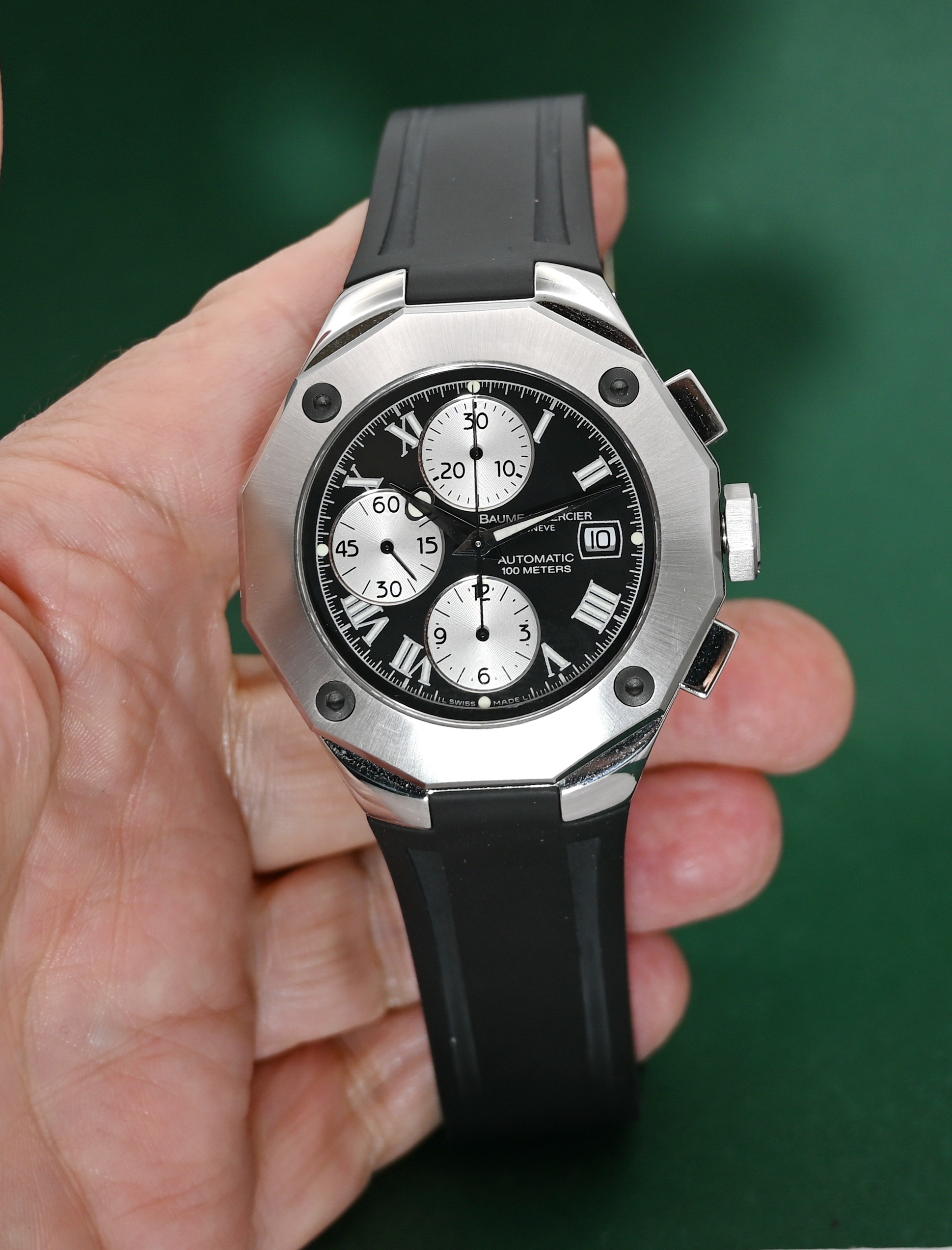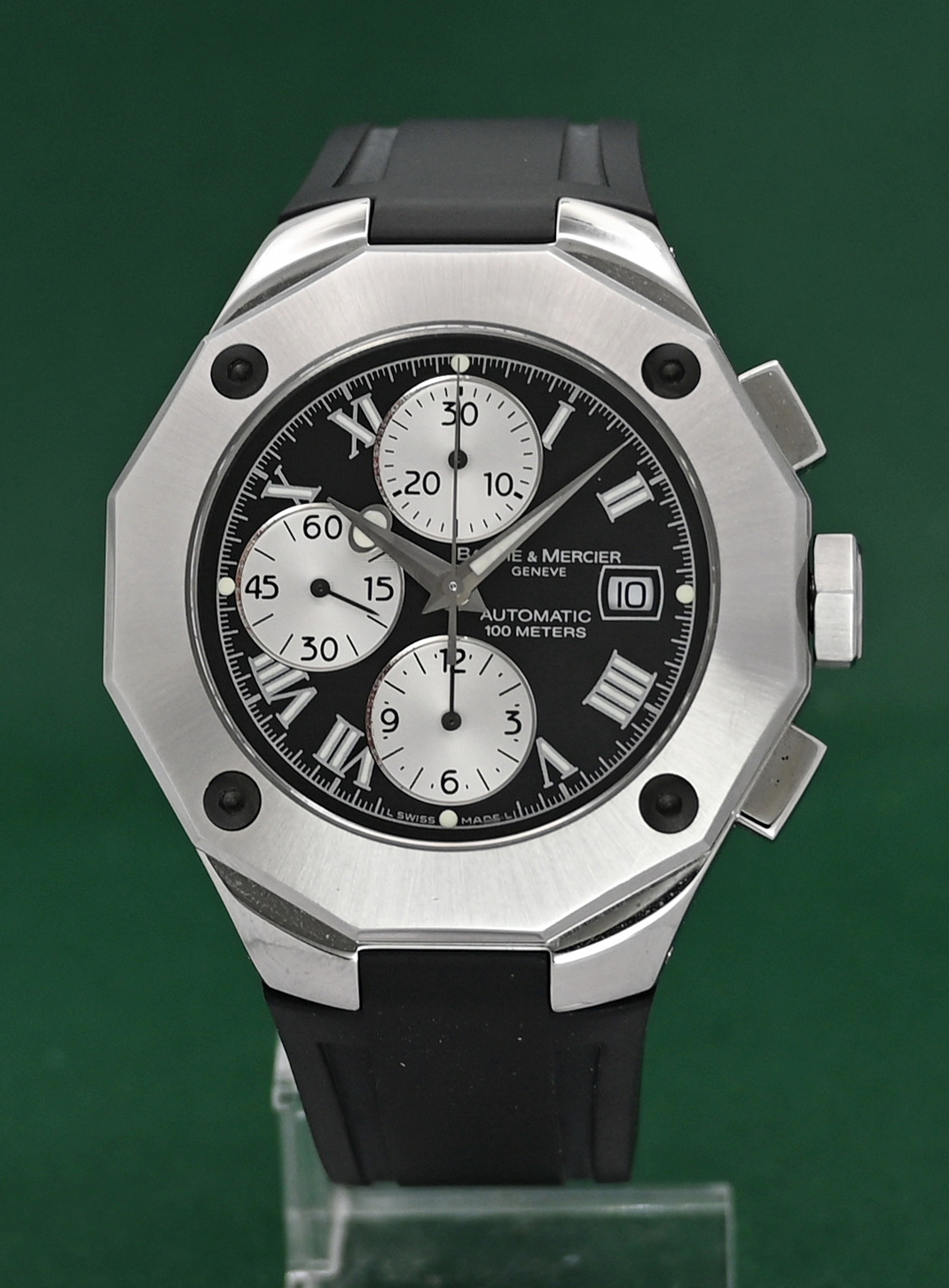 Riviera 65541 Automatic Chronograph Date 43mm Black Panda Roman Dial Box&Papers