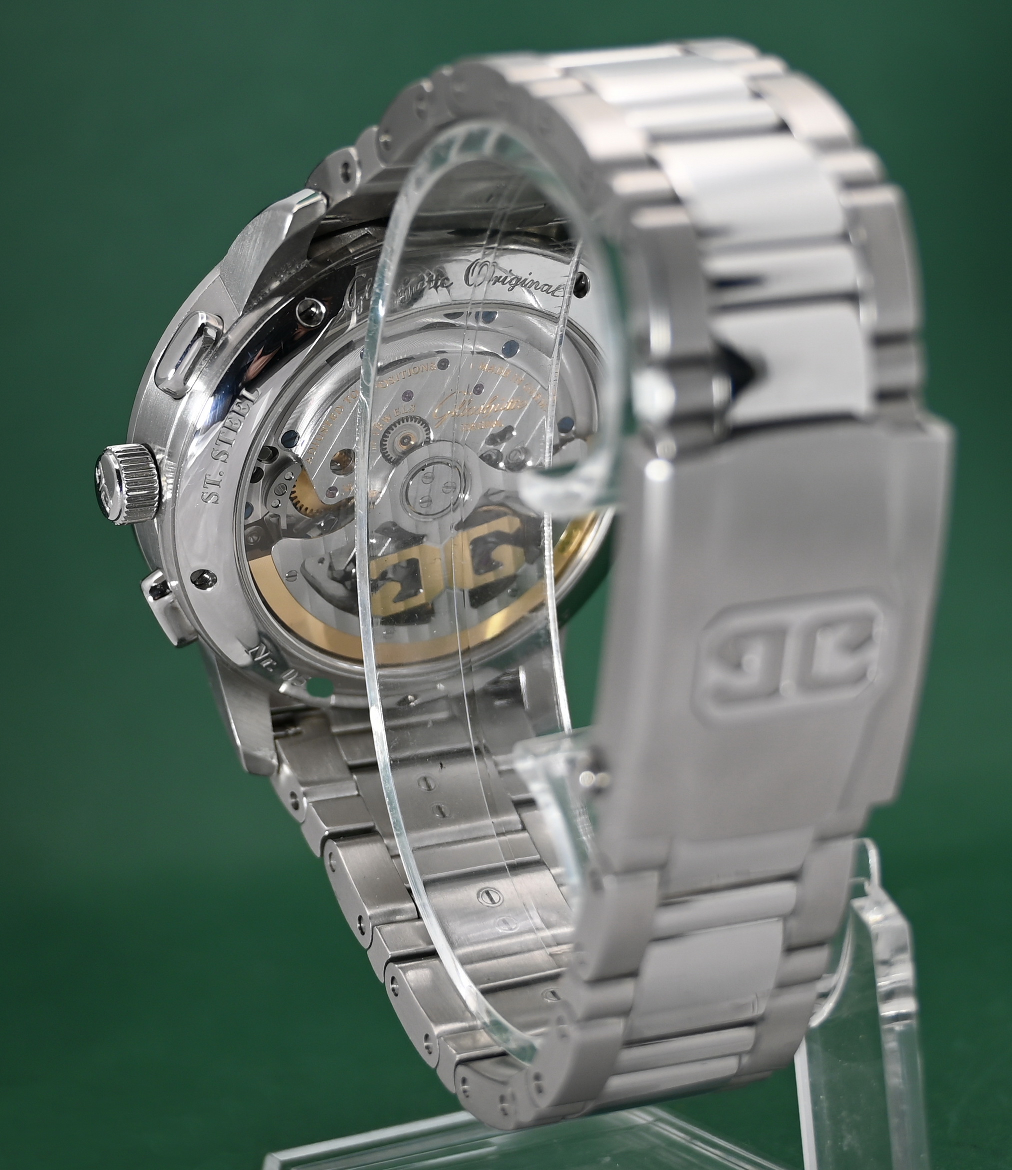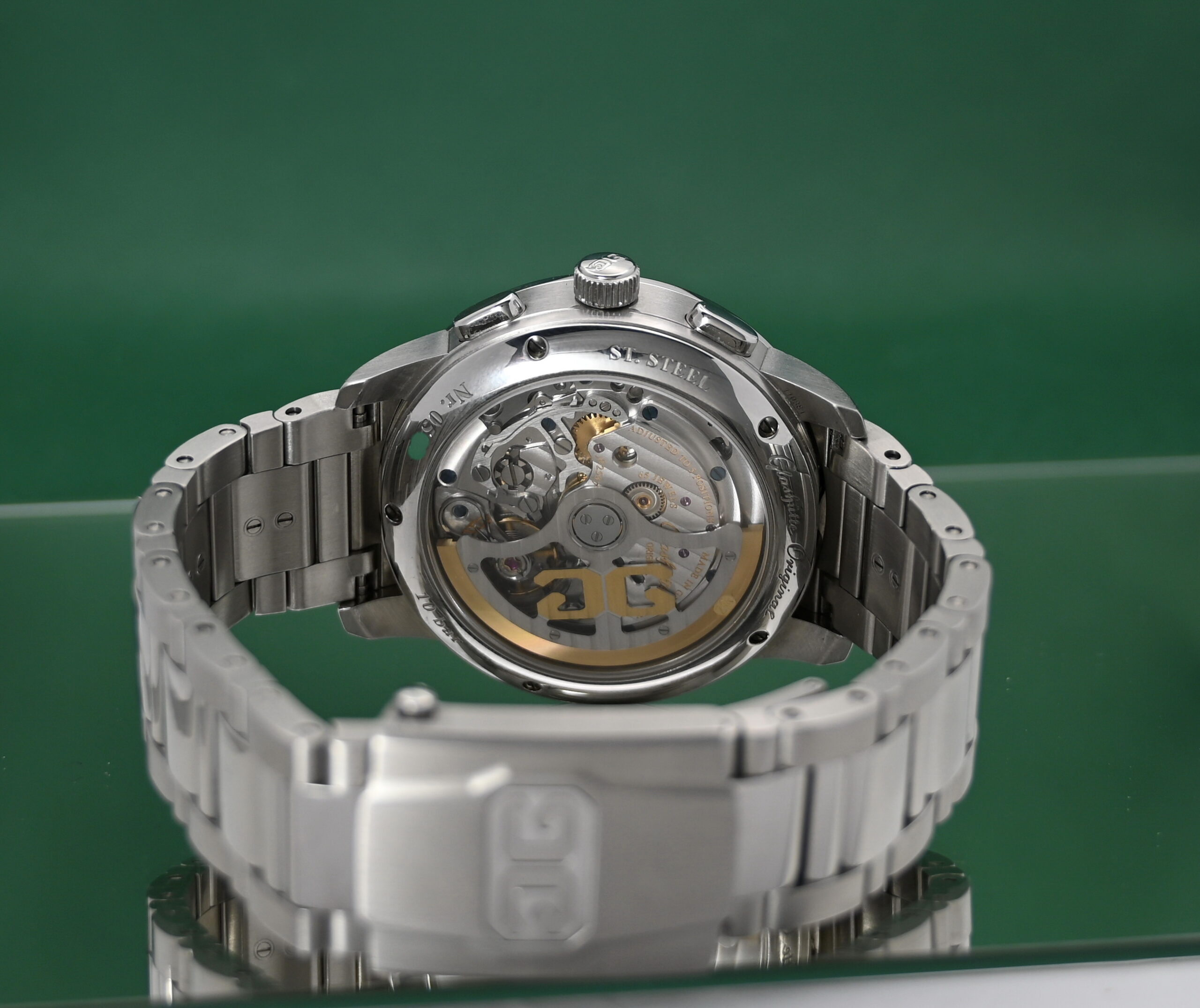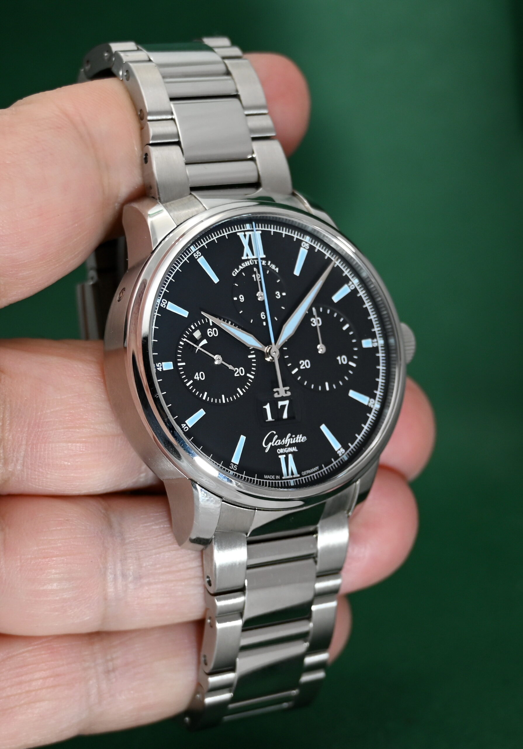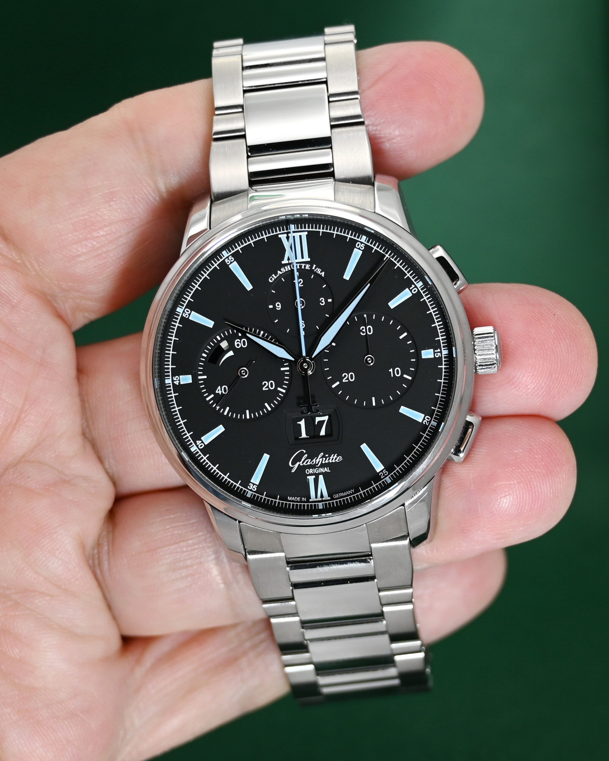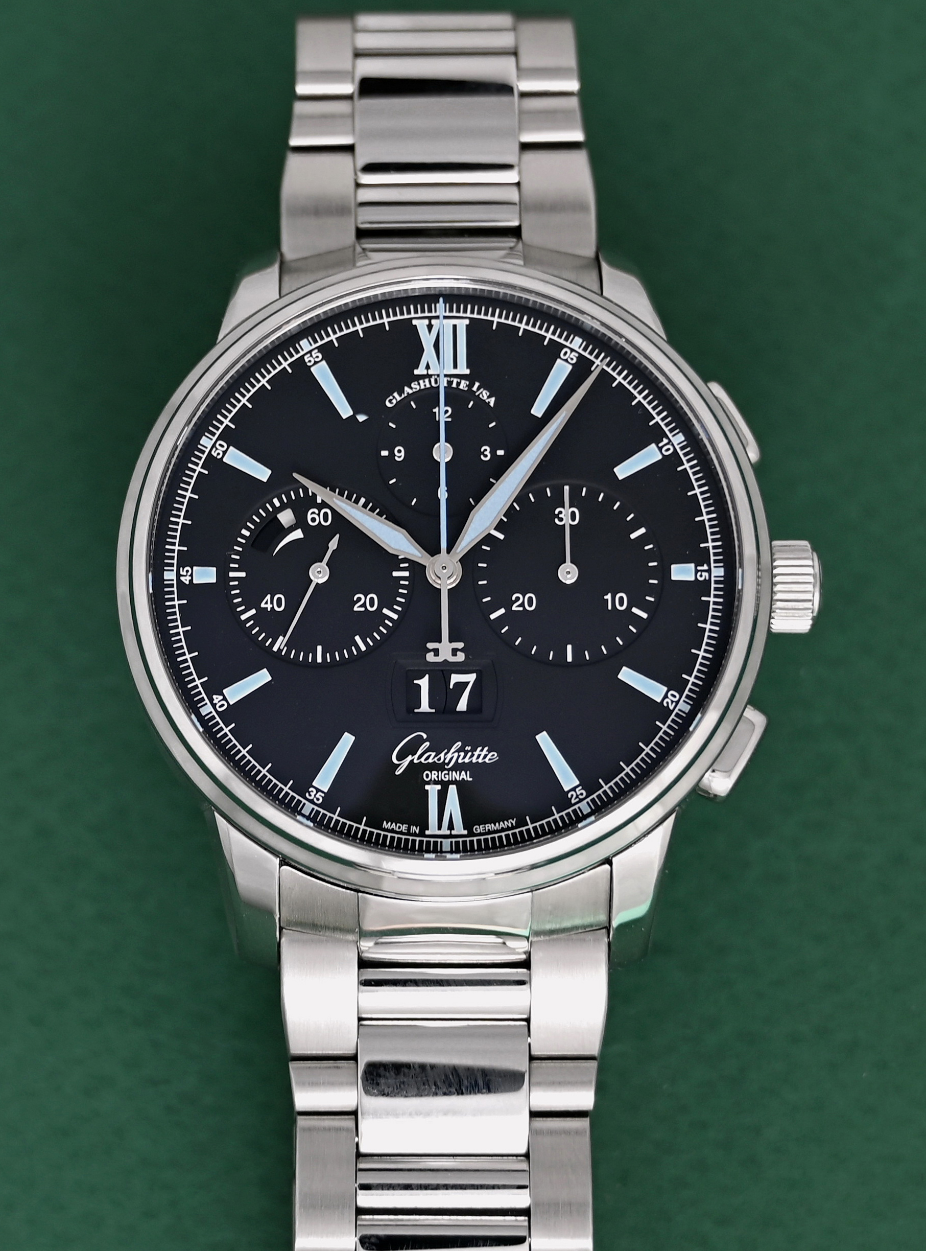 Officially launched in 2014, Glashütte Original’s newly developed Calibre 37 is an integrated chronograph movement that features innovative, compact and highly functional design, and offers exquisite precision and reliable performance. Its alluring deep black dial is set off by high-contrast white print and enhanced by the generous use of radiant blue Super-LumiNova, which highlights the white gold hour, minute and stop seconds hands, Roman numerals at hours 6 and 12 and all hour indexes, permitting excellent legibility even in the dark. Glashütte Original’s unique Panorama Date window is positioned centrally in the lower half of the dial beneath the upper-half triad formed by 30-minute and 12-hour chronograph counters and the small seconds display, in which the power reserve display is charmingly integrated. A substantial, alternately polished and satin-brushed 42 mm stainless steel case adds cool and convincing elegance to this robust, casually stylish and sporty new version. Developed to meet most demanding standards of functionality and optimised for everyday use, the manufactory Calibre 37-01 chronograph movement’s fully integrated, compact construction with flyback mechanism and 12-hour chronograph counter make it a reliable, precise and aesthetically satisfying companion for day-to-day wear. The 4Hz automatic manufactory movement assures maximum functionality through its efficient and compact method of construction. An example is the switch lever; in the Calibre 37 series chronographs, in contrast to previous designs, the lever is comprised of only one part. With a power reserve of 70 hours when fully wound, the automatic Calibre 37-01 represents an absolute peak value in the realm of mechanical chronographs. In order to keep the performance and amplitude stable over the entire period of time, a new oscillation system with low energy requirements was developed, effectively governed by a single spring barrel. Optimal translation between spring barrel and oscillation system assures extremely stable and precise performance with no deviations over 70 hours.