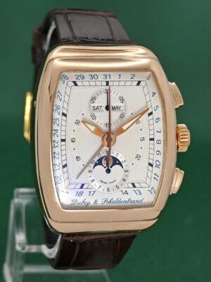 • Gran Chrono Astro Automatic Triple Date Calendar Chronograph Moonphase 18k Gold Silver Guilloche Dial