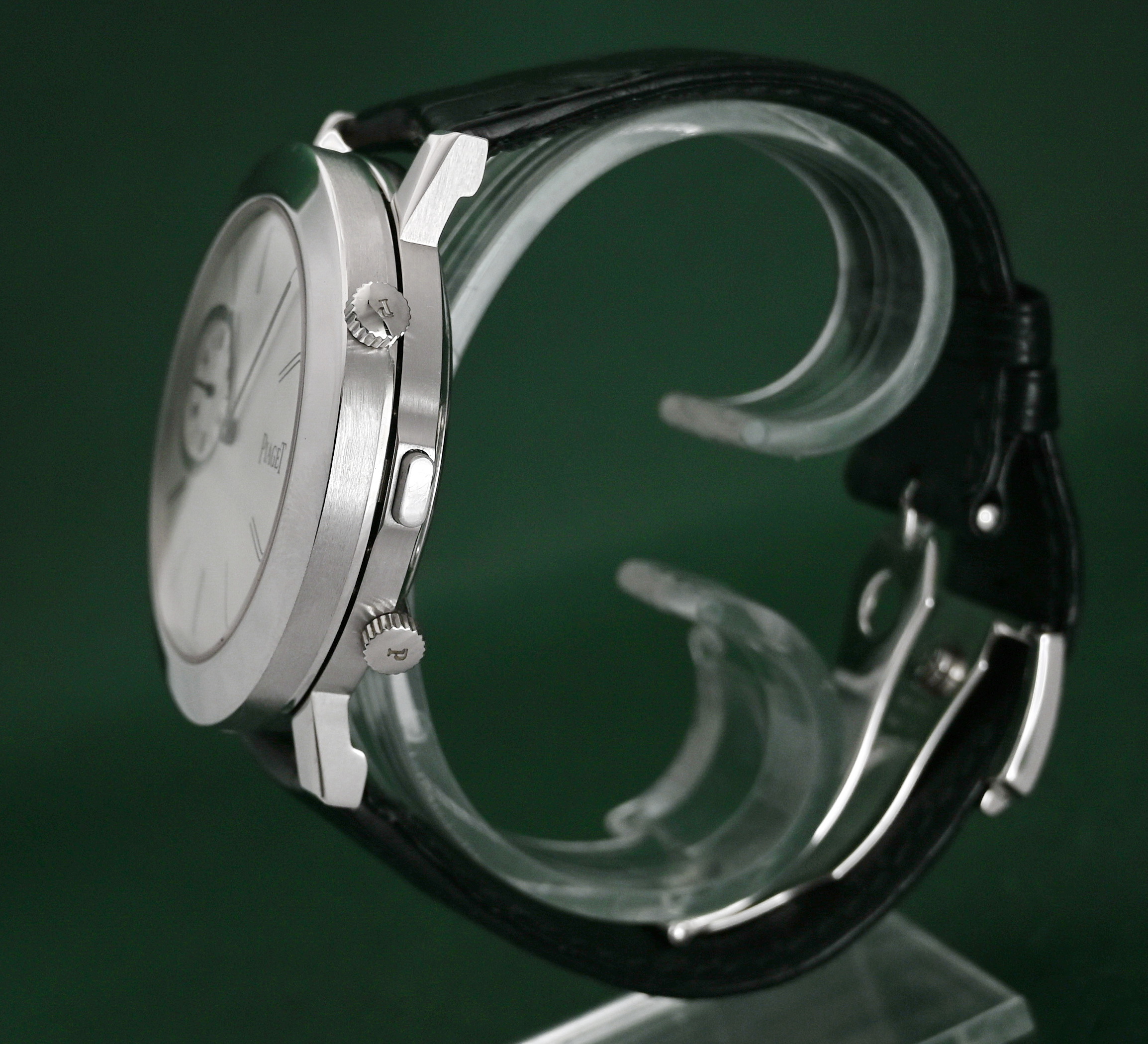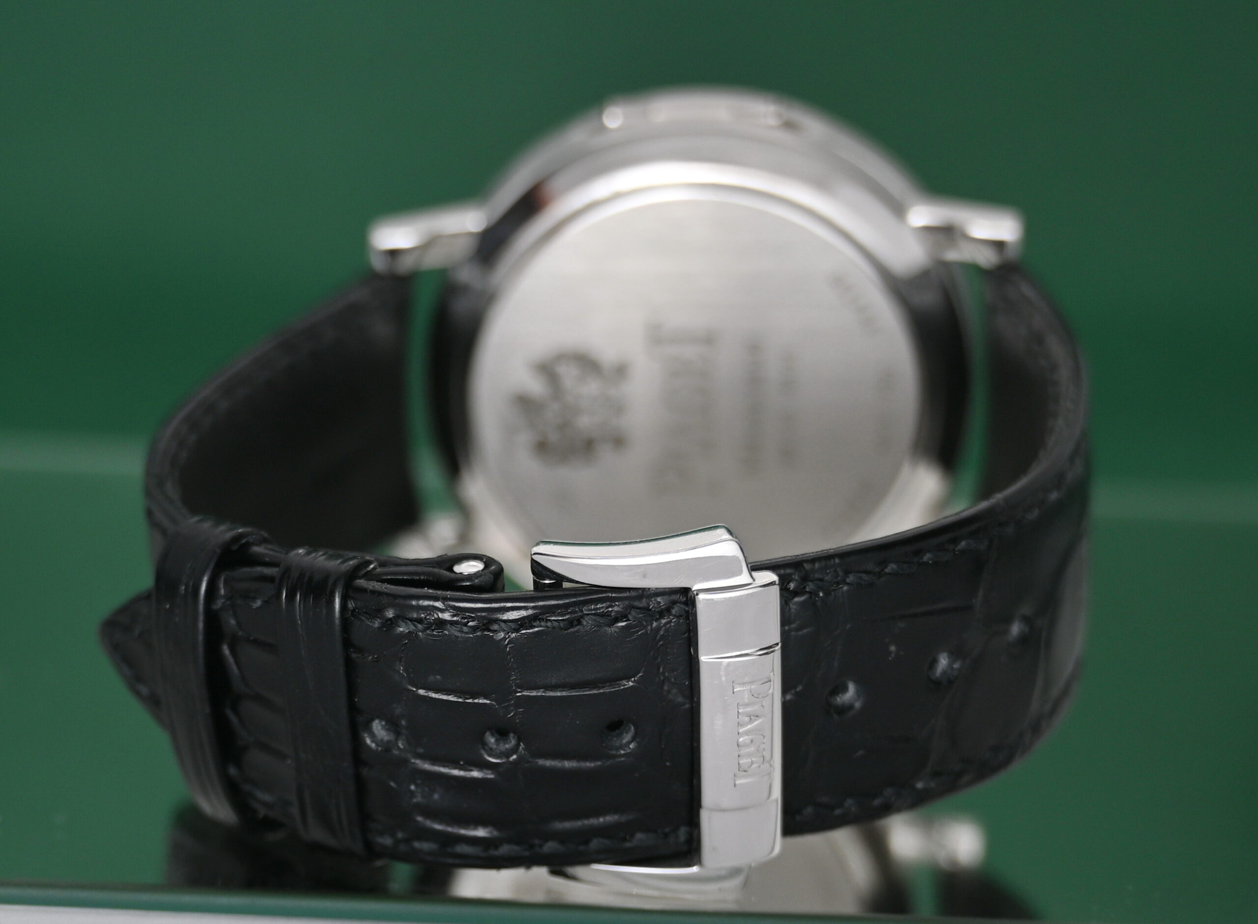 The Piaget Altiplano Double Jeu 43mm 18k White Gold (G0A32152) is a highly specialized ultra-thin dress watch featuring a unique two-level case design. This model belongs to the Altiplano collection, which is celebrated for its minimalist aesthetic and record-breaking slim mechanical movements.