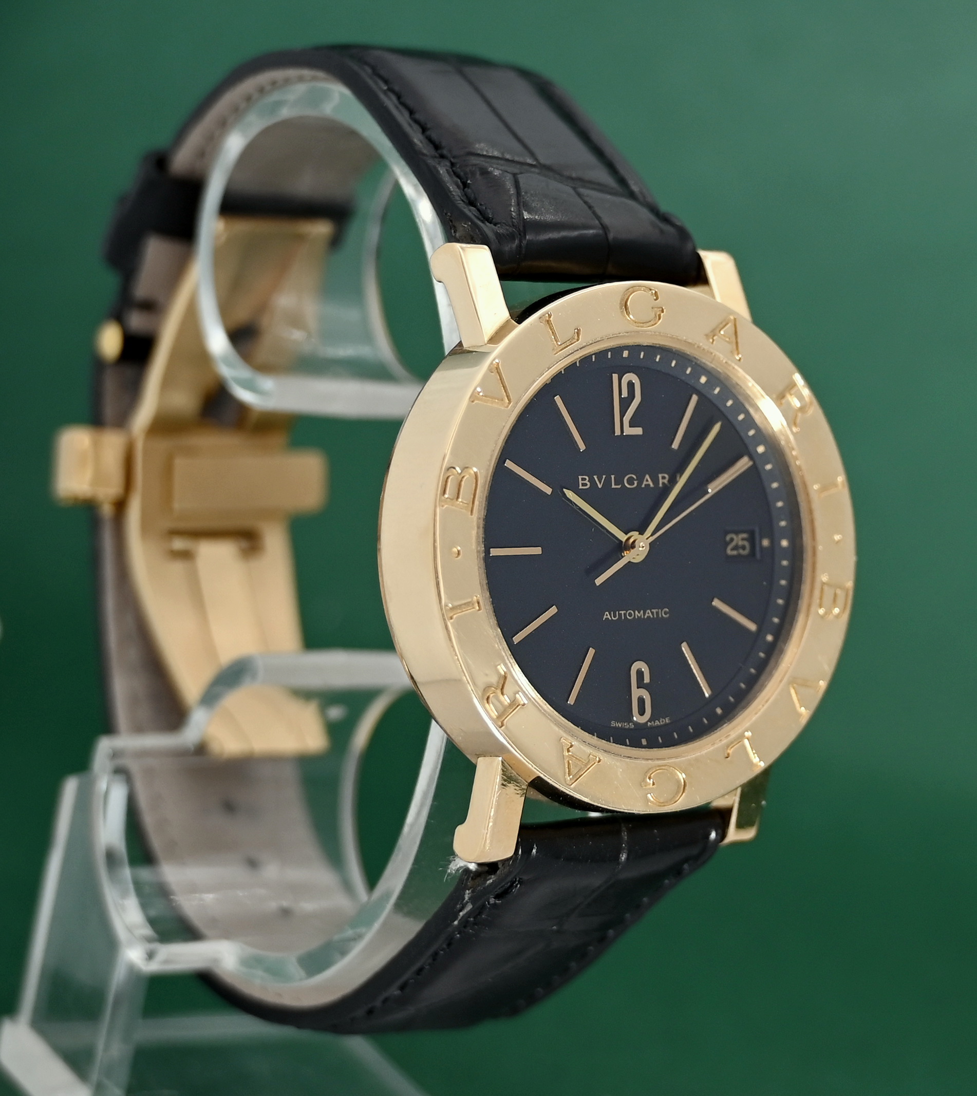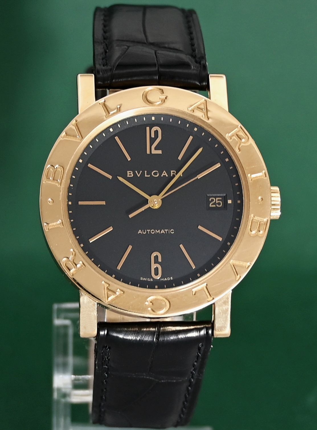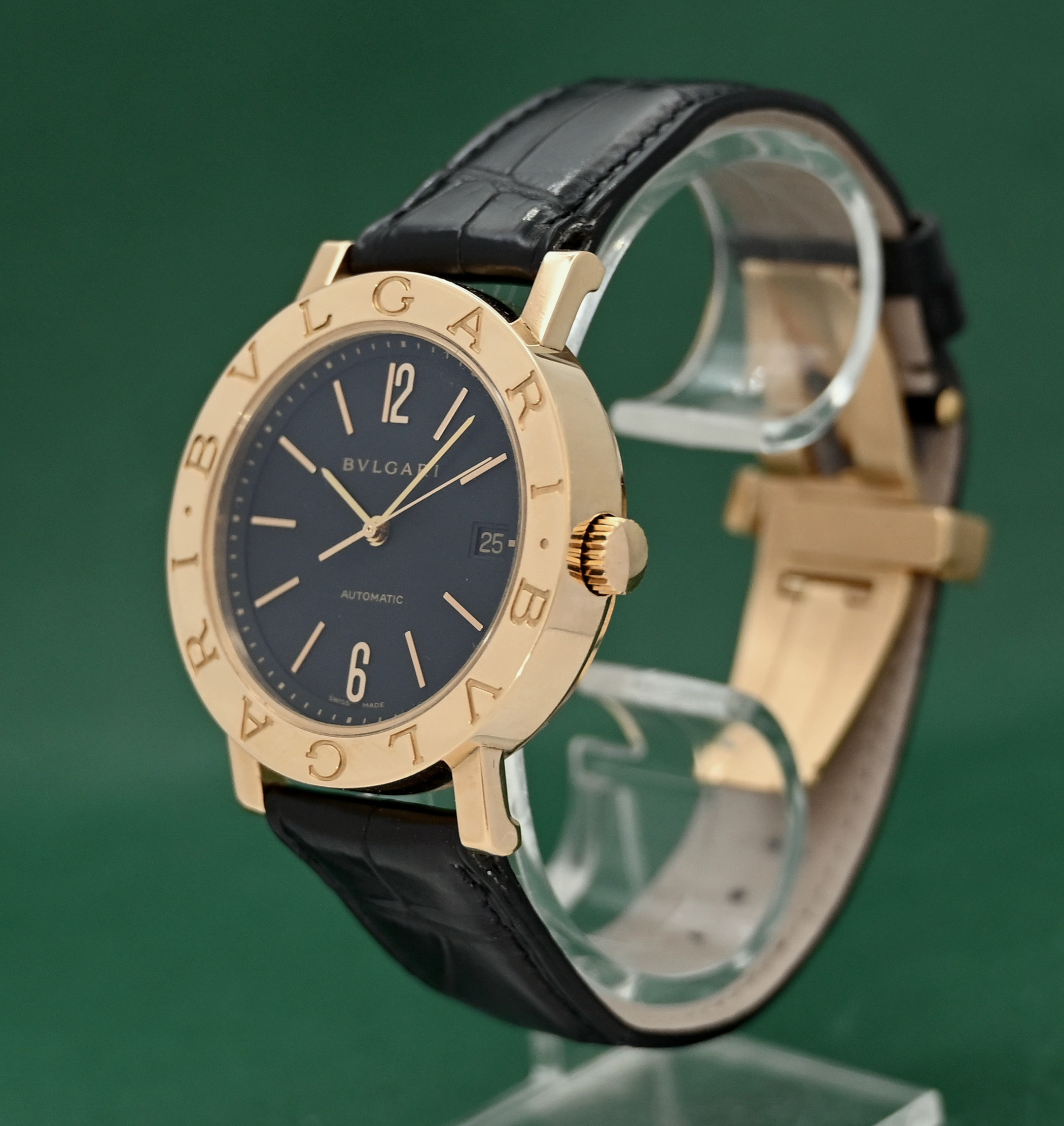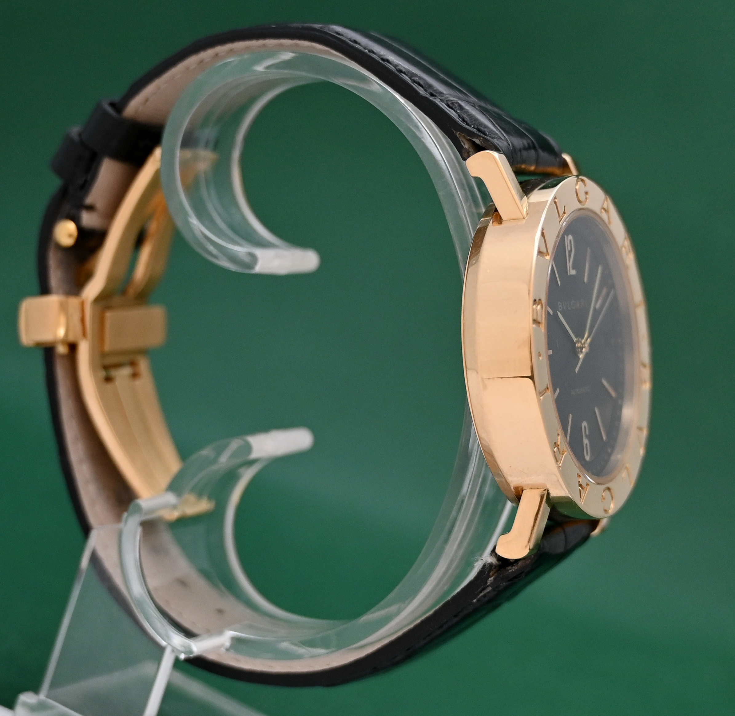 Bvlgari BB38GL 38mm Automatic Date 18k Gold Folding Clasp Black Dial