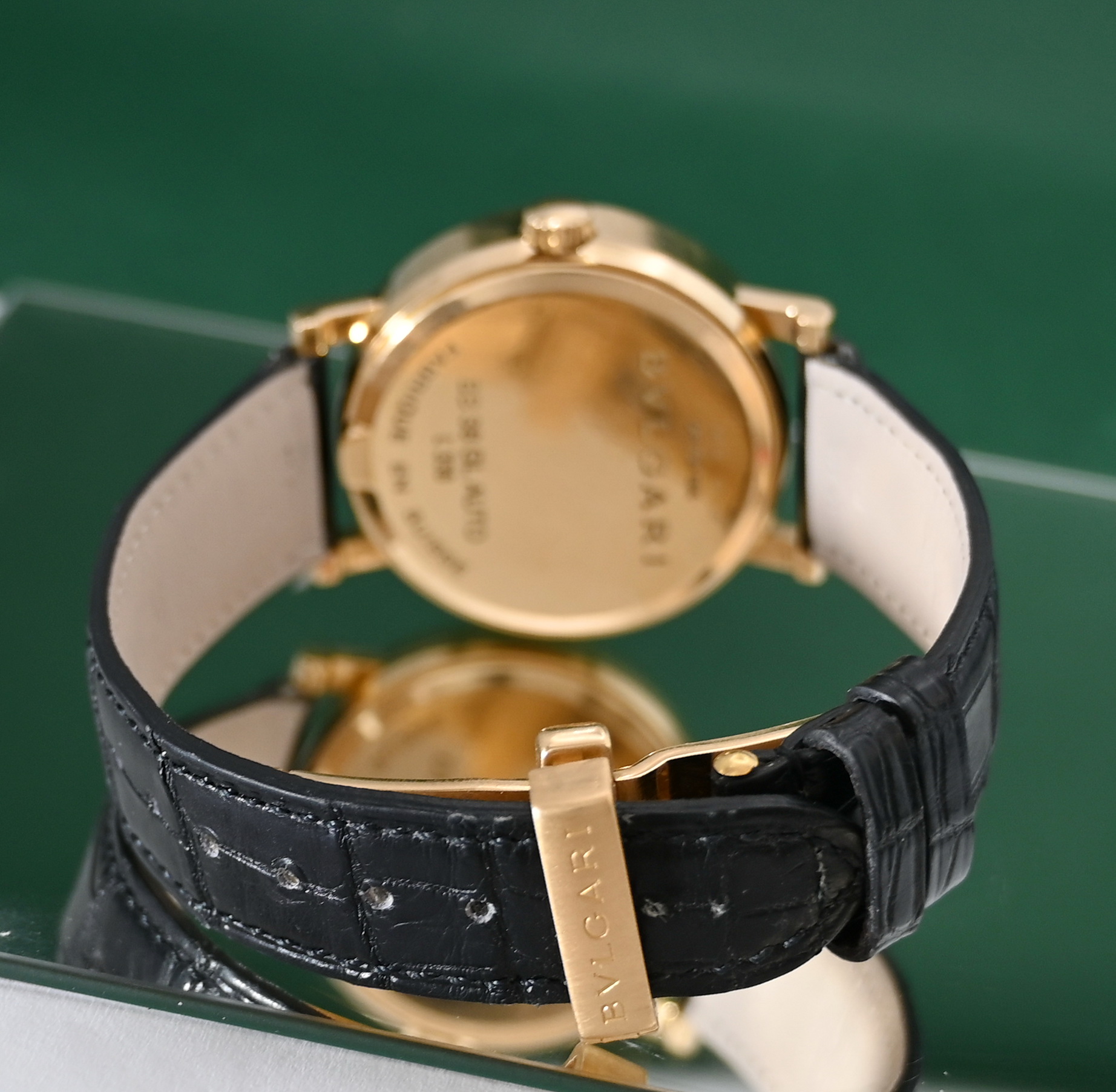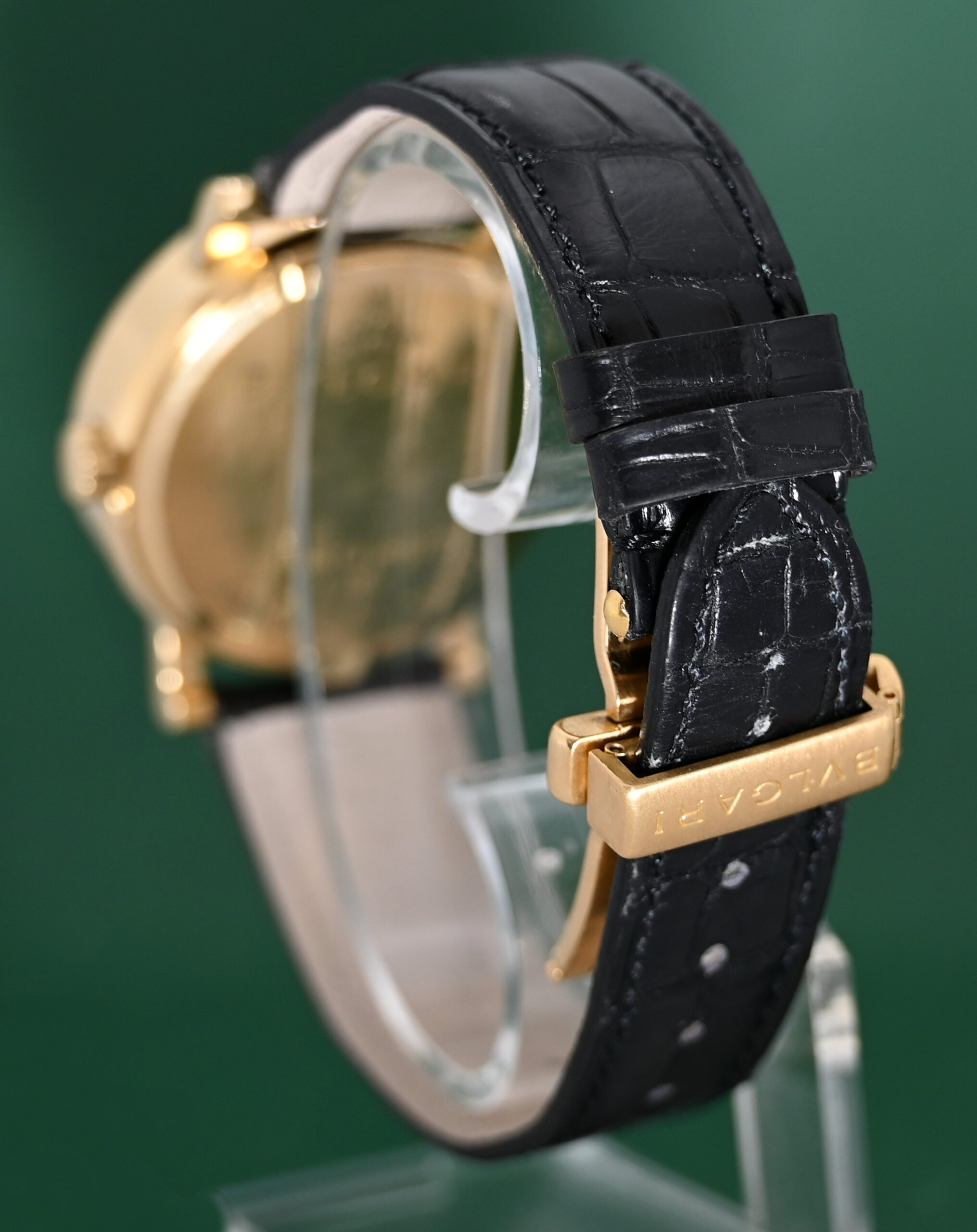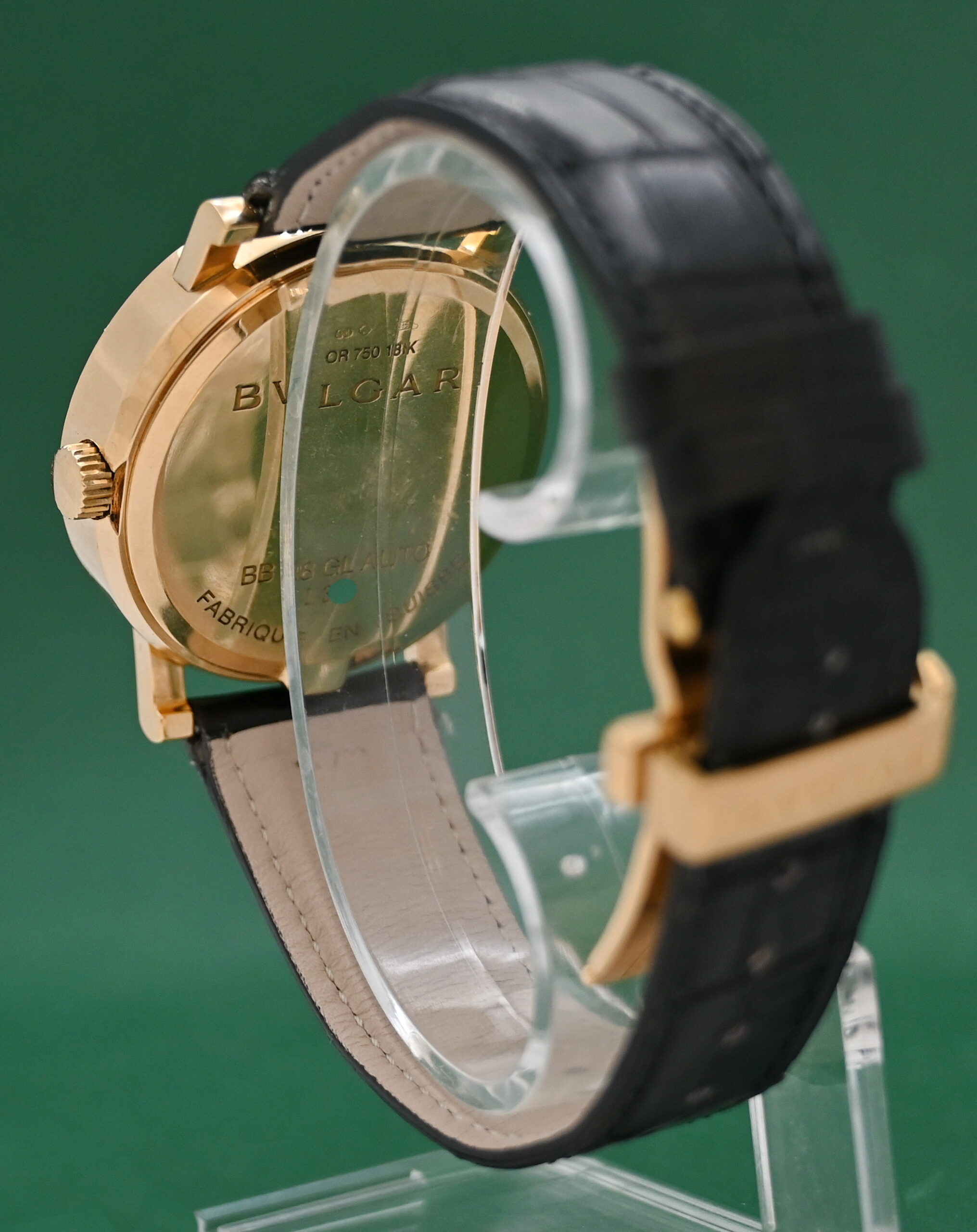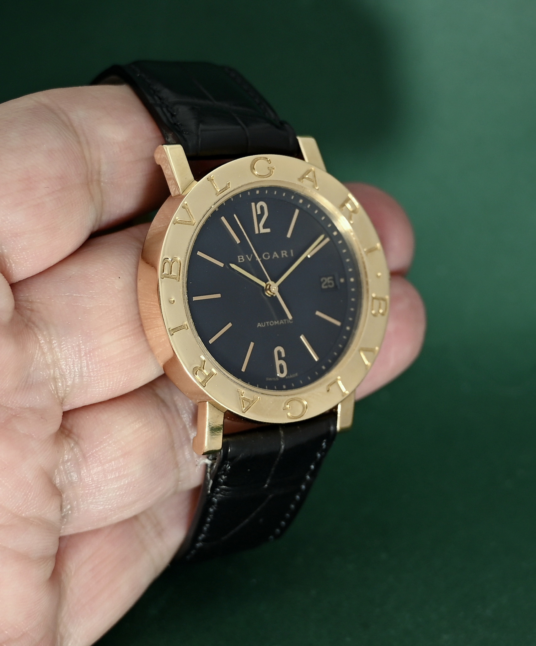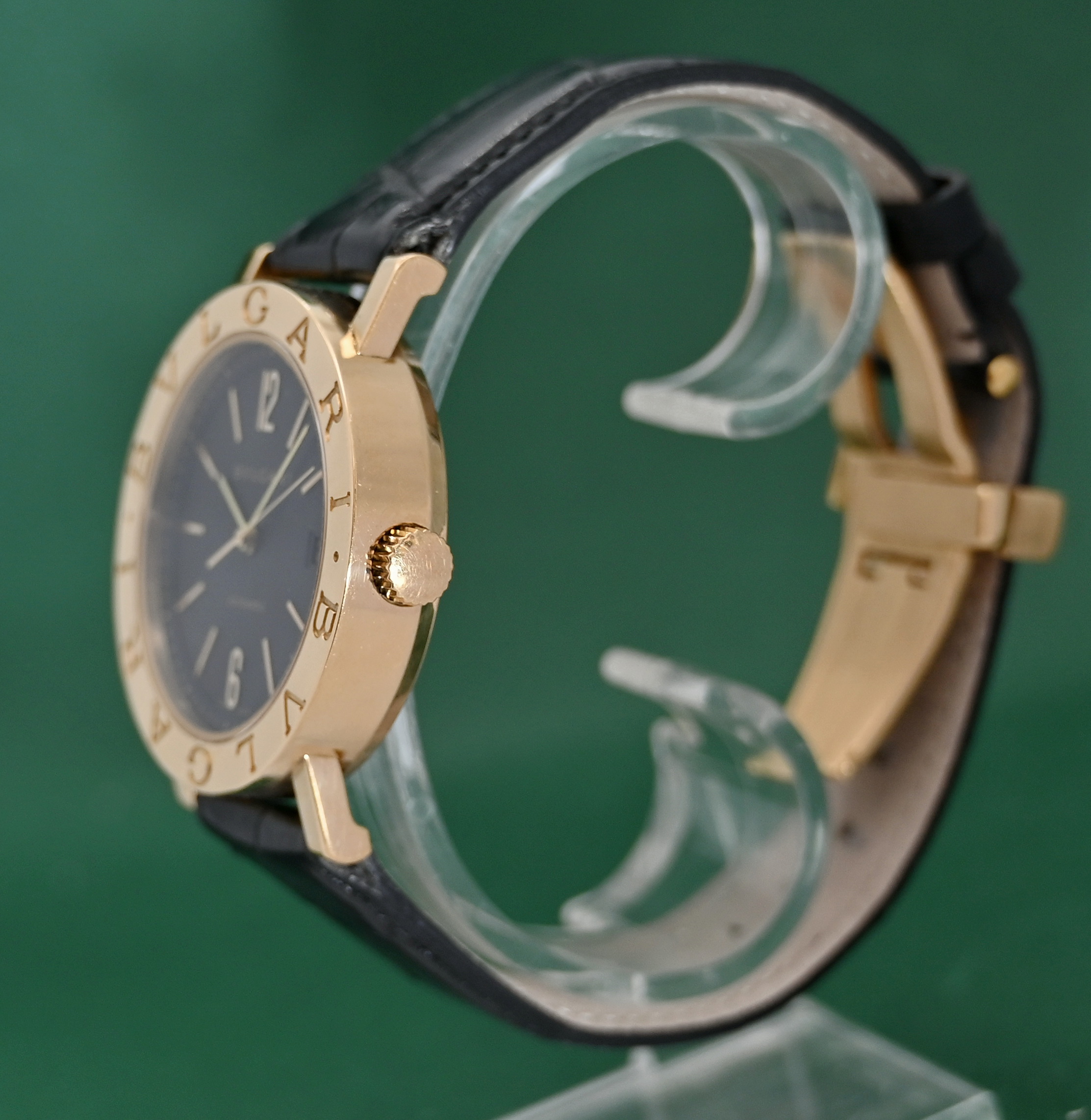Bvlgari BB38GL 38mm Automatic Date 18k Gold Folding Clasp Black Dial