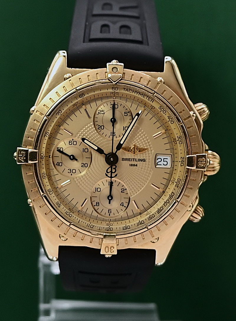 Inquire - Chronomat K13047 Automatic Chronograph Date 39mm 18k Gold Champagne Dial
