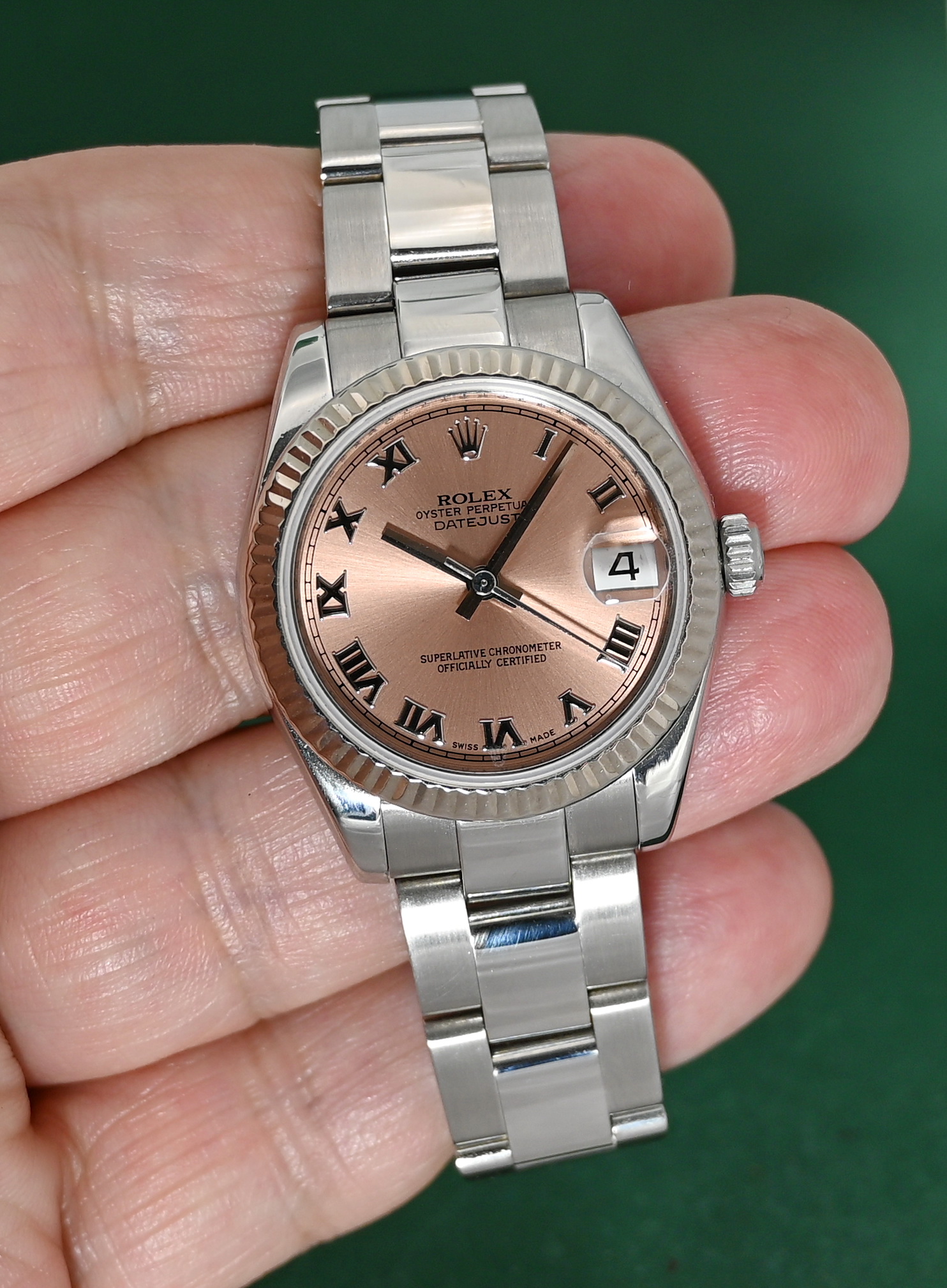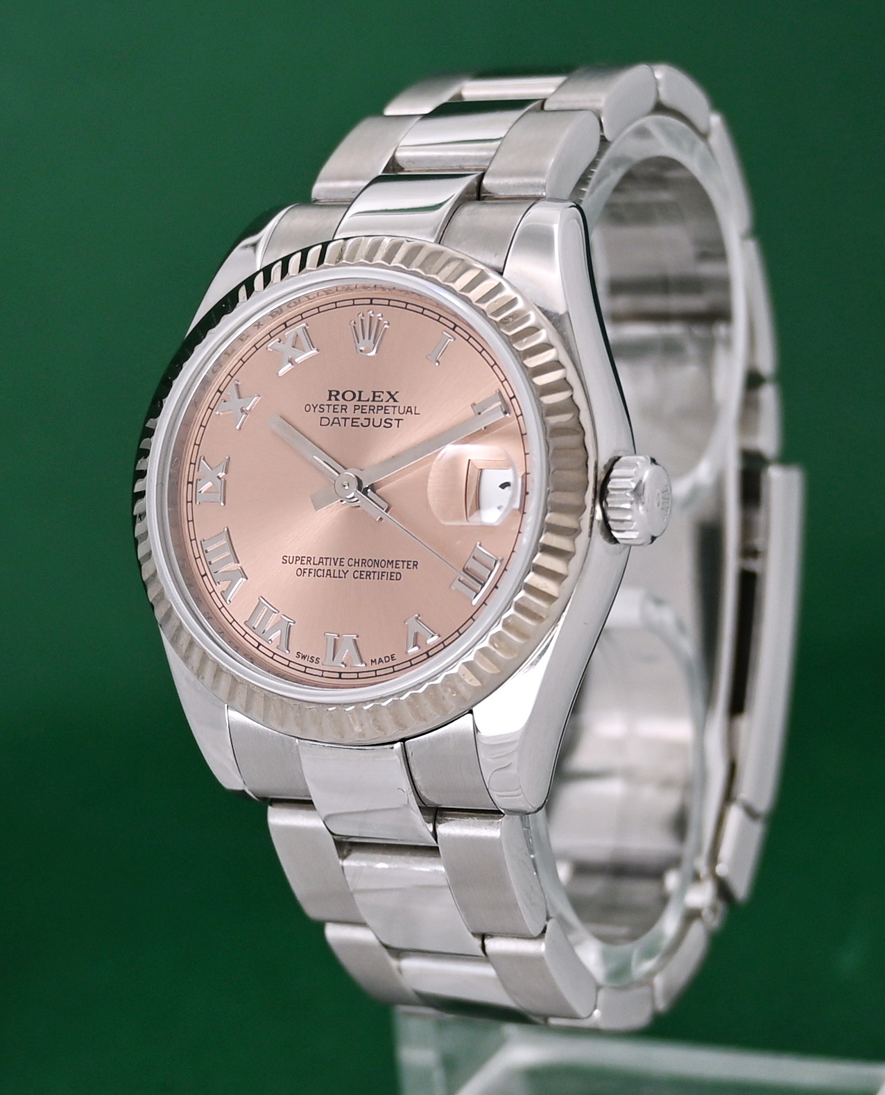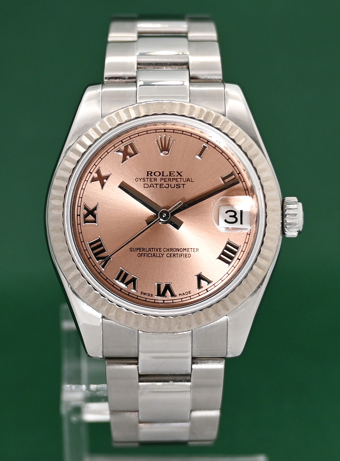 Datejust 178274 Medium 31mm White Gold Bezel 2008 Pink Roman Dial Full Set