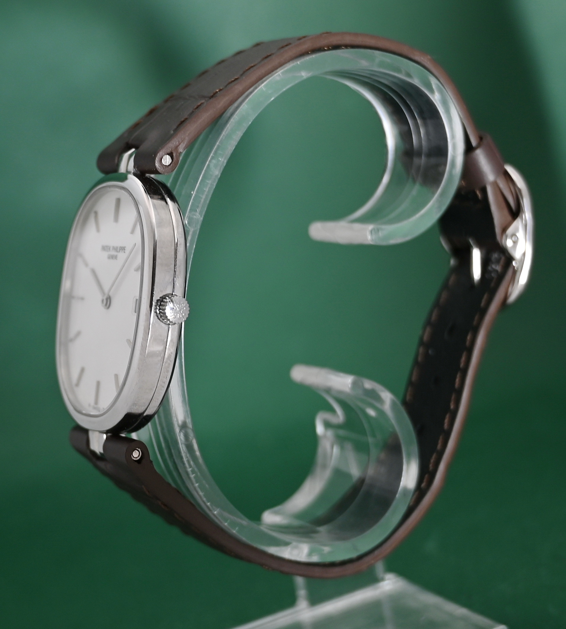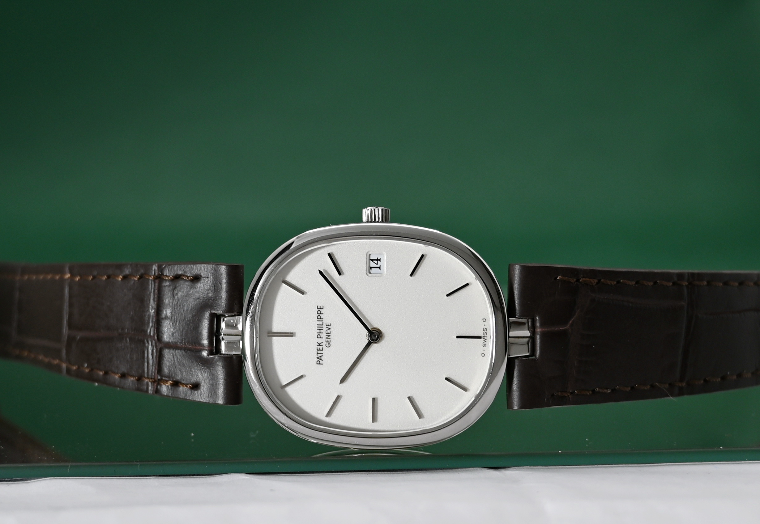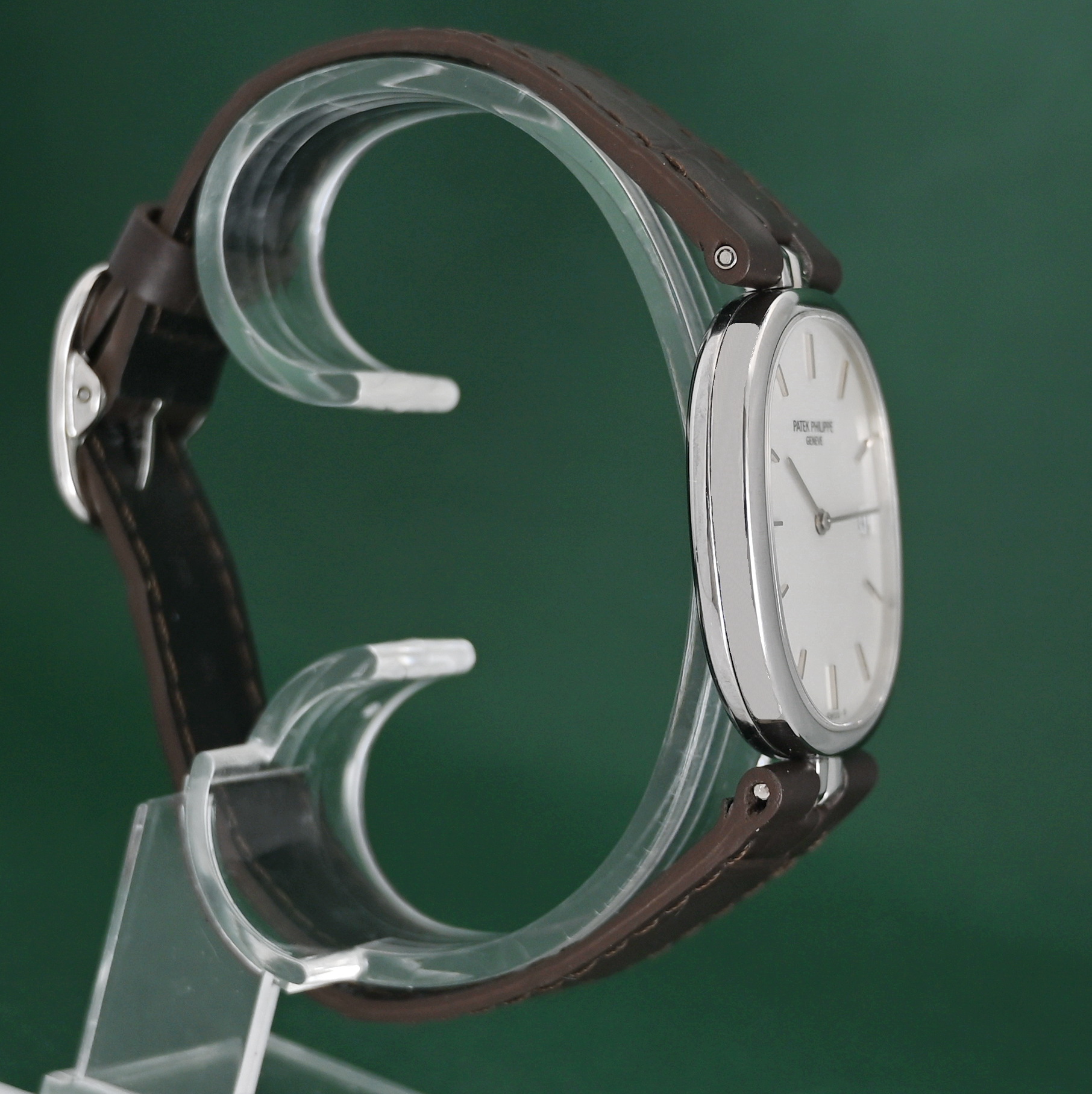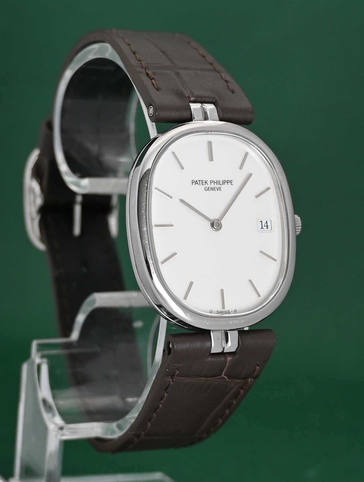 • Movement: Powered by the Patek Philippe Caliber E23C (also referred to as E23 SC), a high-grade 7-jewel quartz movement with a date function.