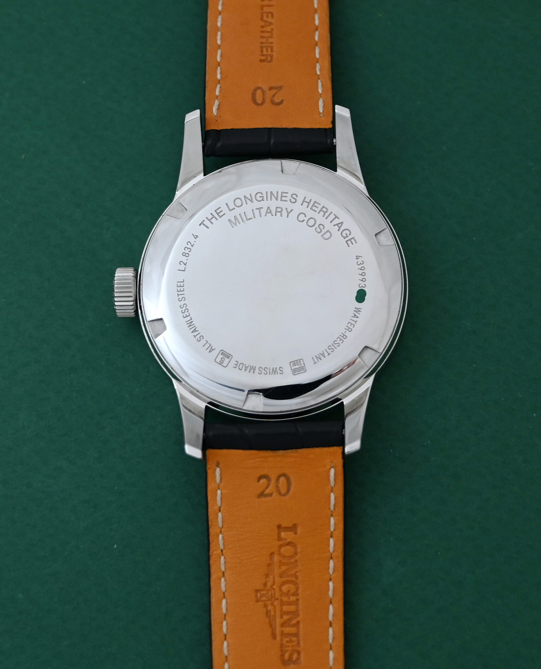 The Longines Heritage Military COSD (Ref. L2.832.4.53.0/5) is a modern reissue of a 1940s timepiece designed for the British Combined Operations Command. It features a 40mm stainless steel case with a distinctive matte black dial and a broad arrow symbol, historically used to indicate British government property.