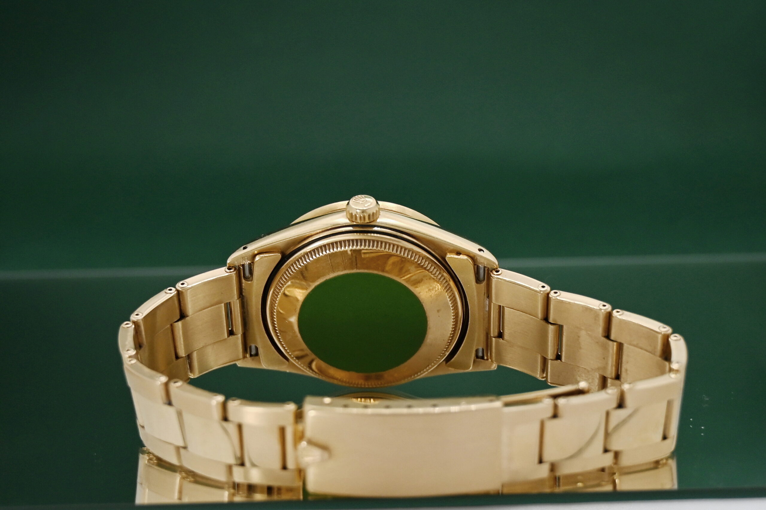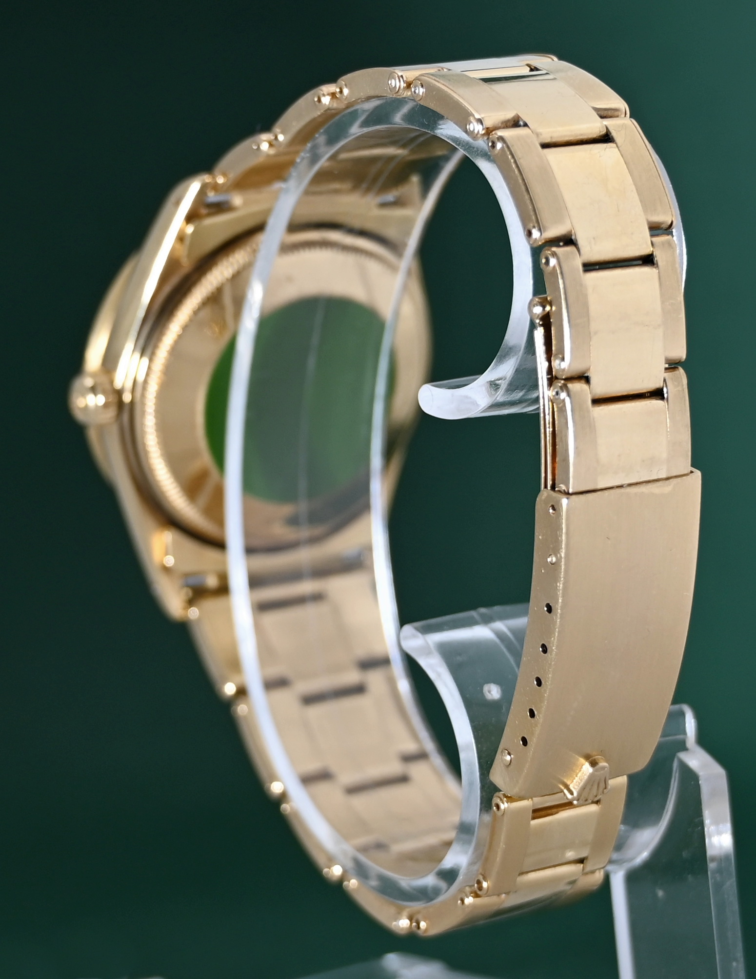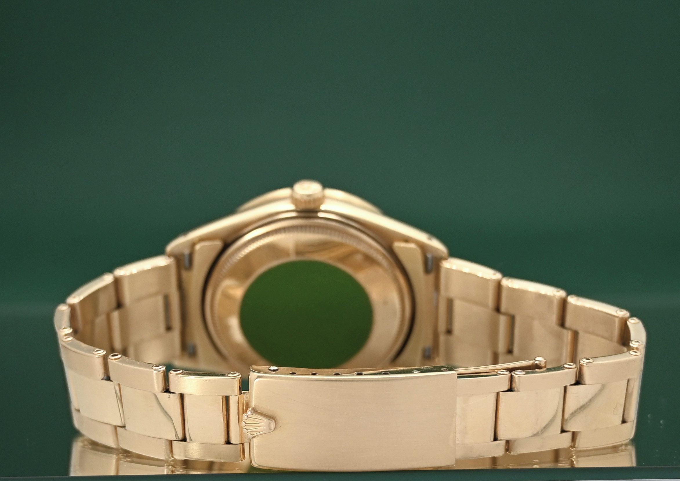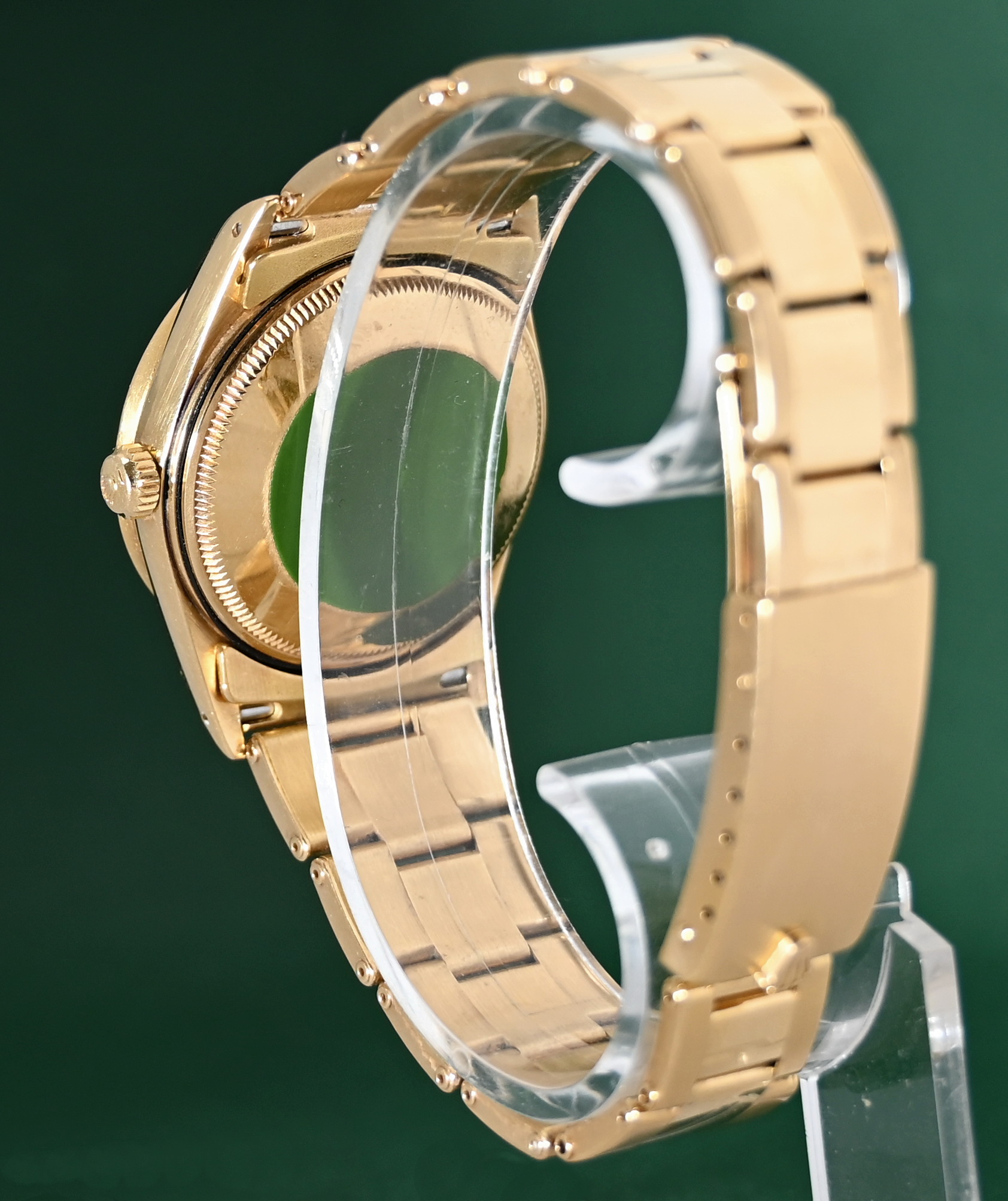 Material: 18k solid yellow gold (case and often the fluted or engine-turned bezel).