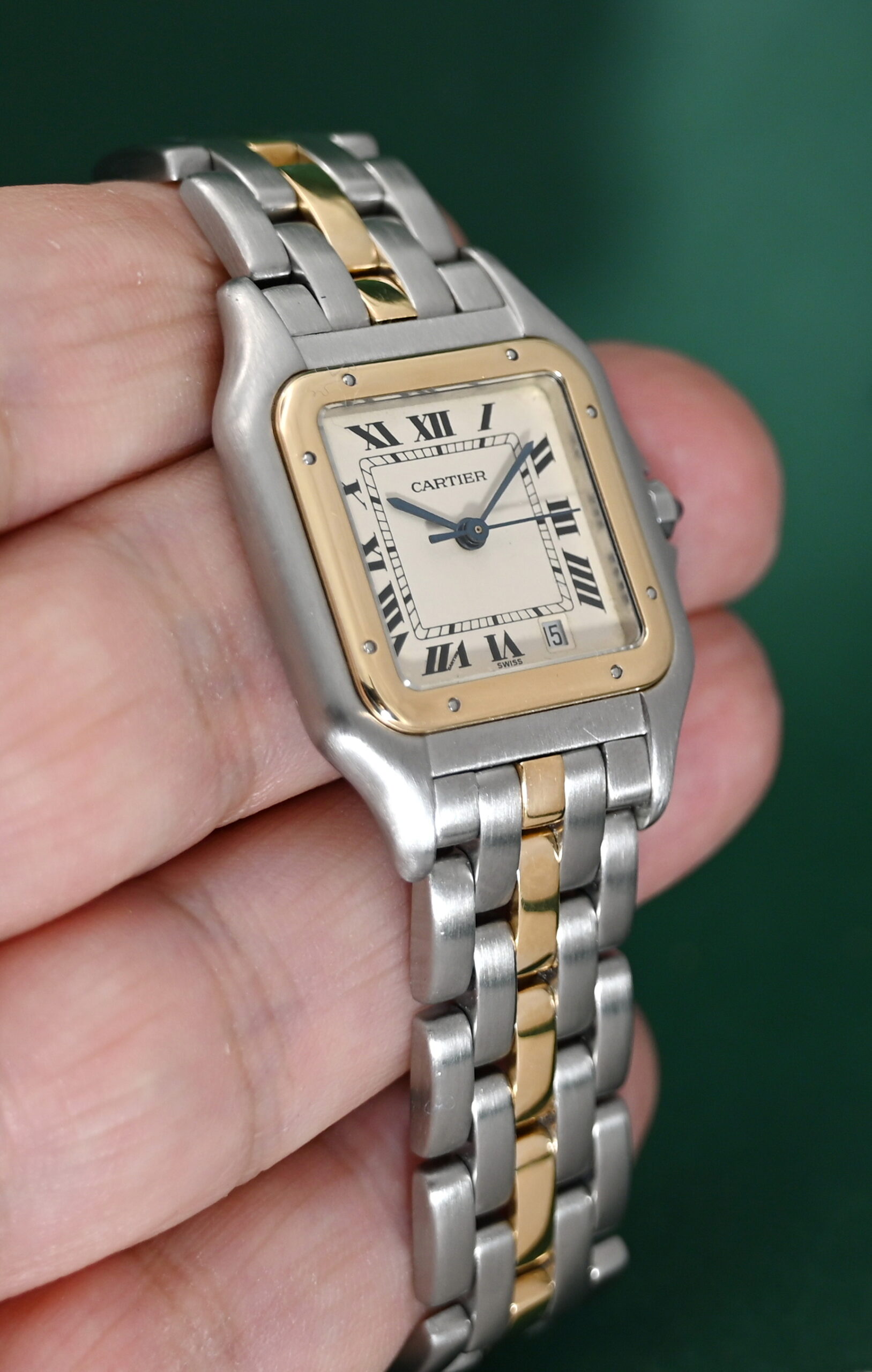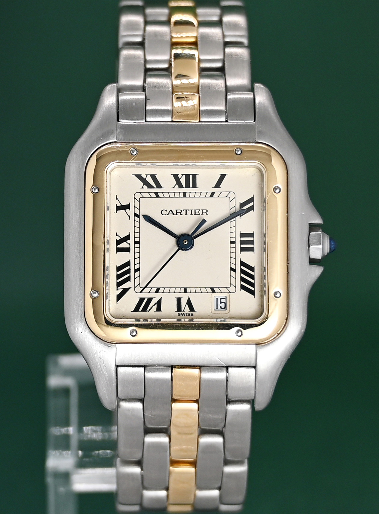 Panthere 83949 Medium Date 18k Gold Steel One Row White Roman Dial