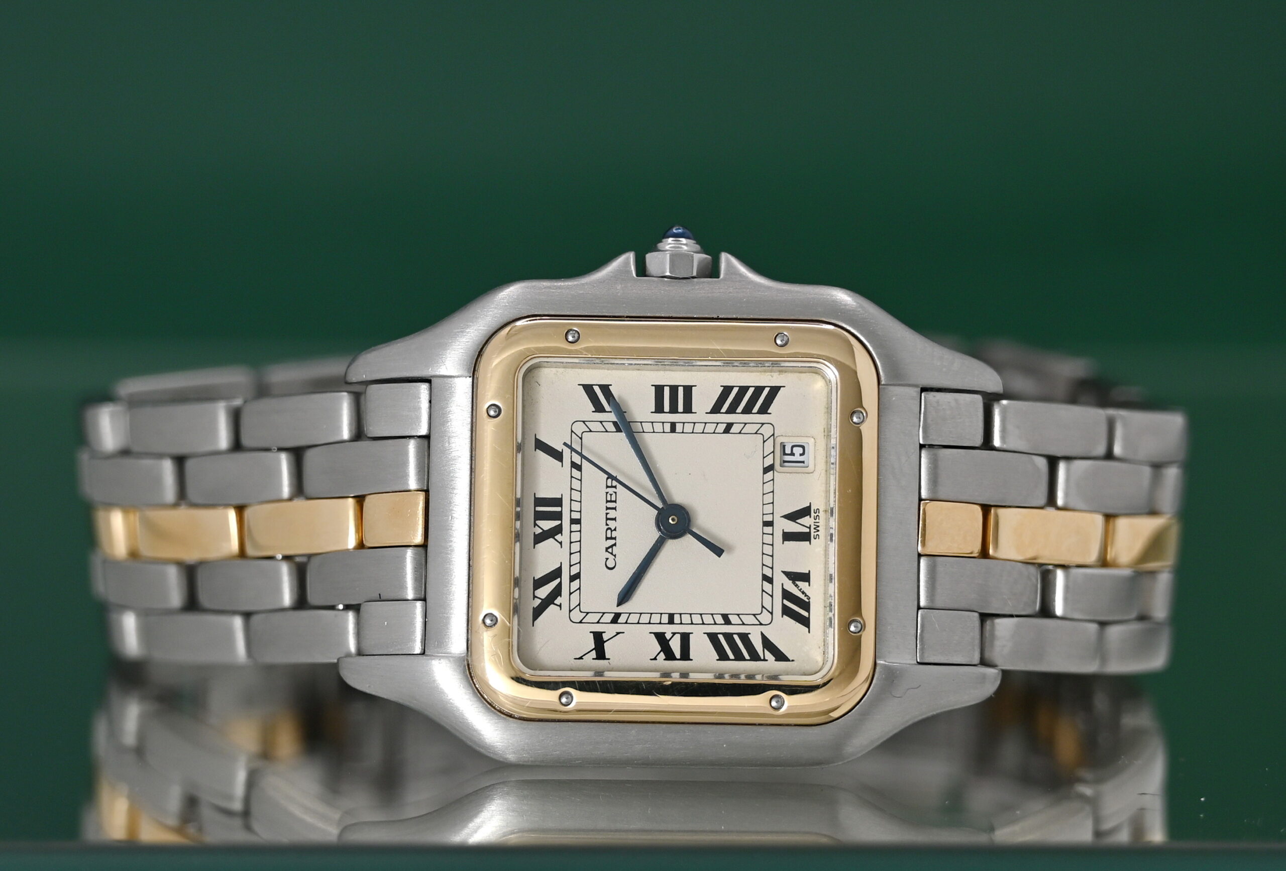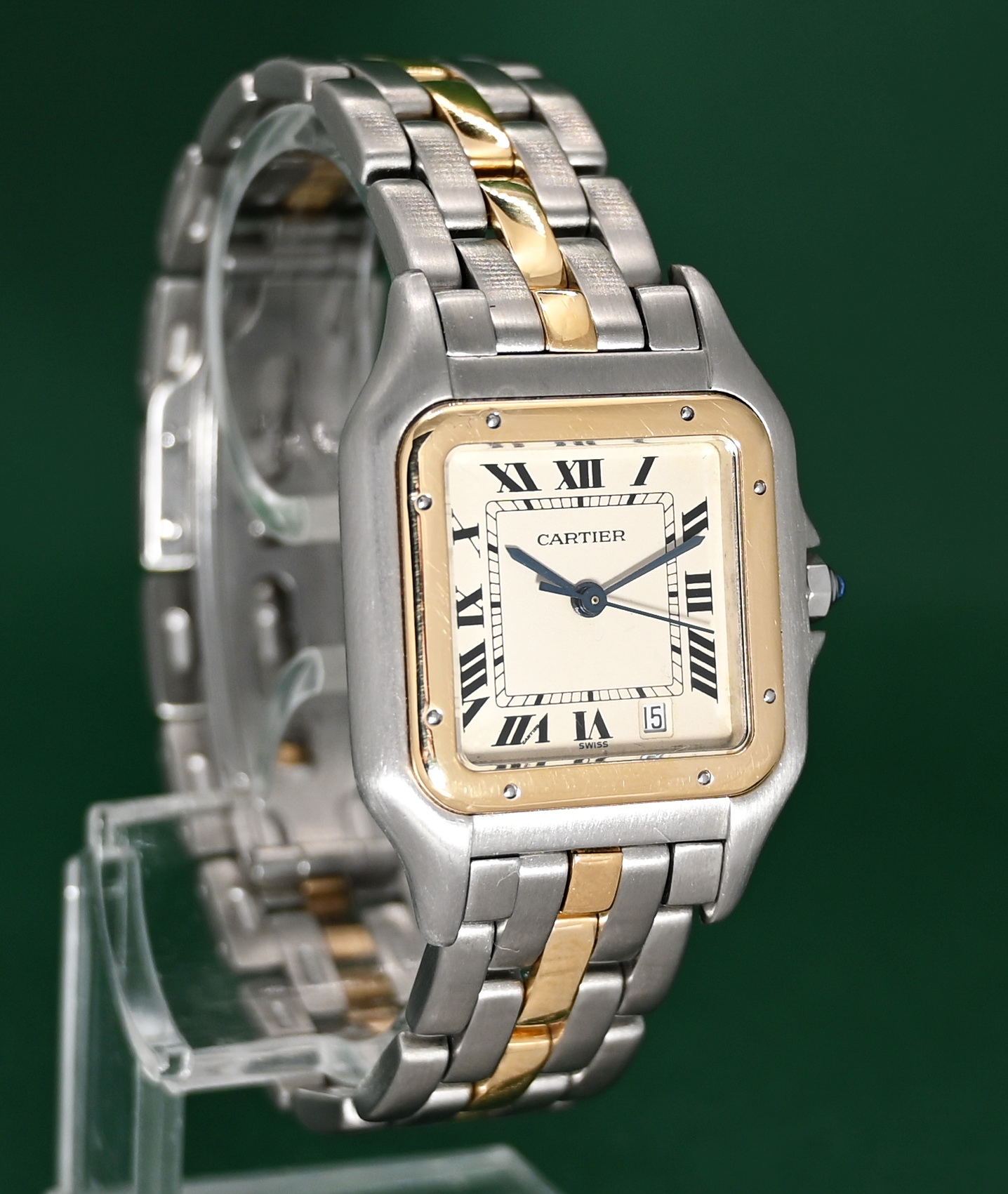 Inquire - Panthere 83949 Medium Date 18k Gold Steel One Row White Roman Dial