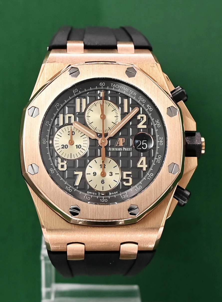 Inquire - Royal Oak Offshore 26470OR Automatic Chronograph Date 18k Rose Gold 42mm Grey Dial Box & Audemars Service Papers