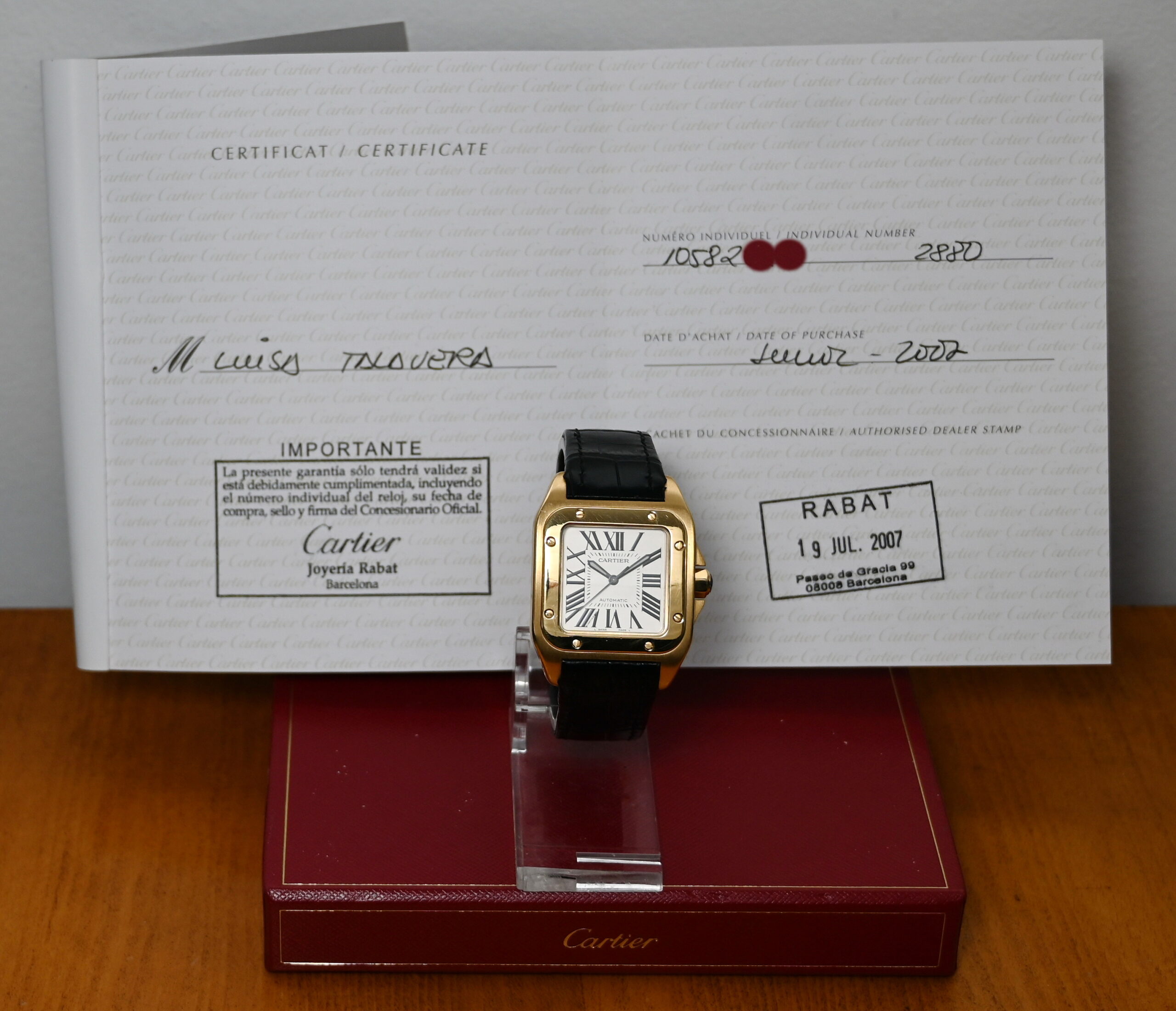 Santos 100 Automatic 2880 18k Gold Roman Dial Box&Papers