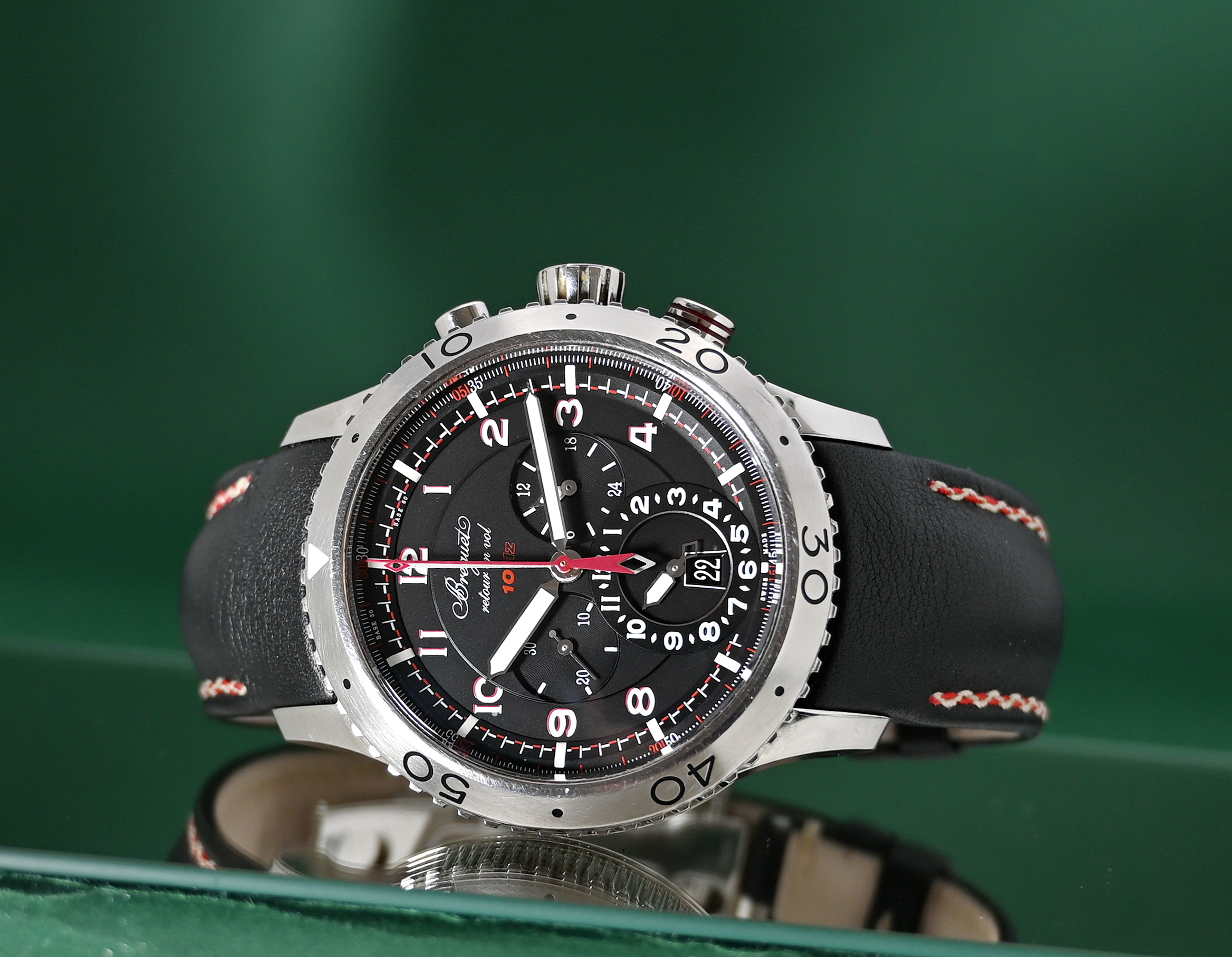 Inquire - Type XXII 3880/1 Automatic Flyback GMT Chronograph 24HRS Date 44mm Black Dial